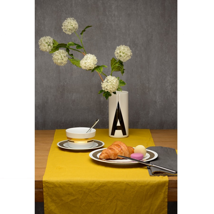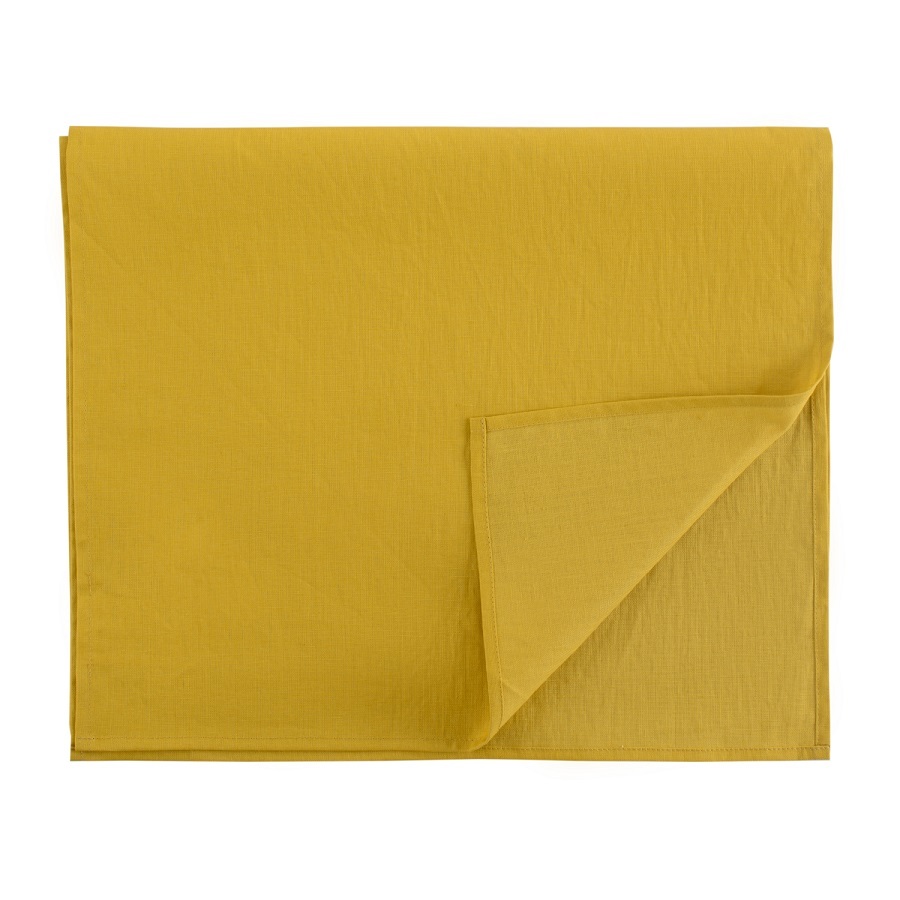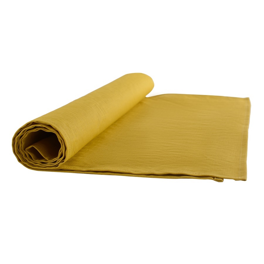Дорожка на стол из умягченного льна с декоративной обработкой горчичного цвета Tkano