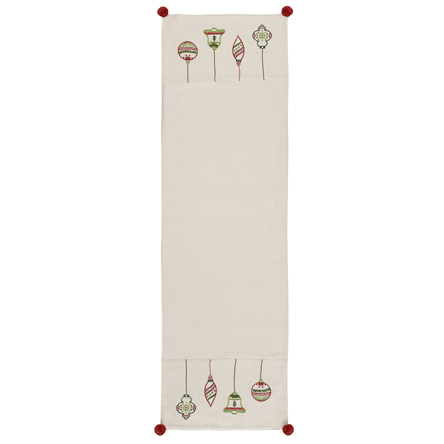 Дорожка с вышивкой Christmas decorations из коллекции New Year Essential – оригинальный текстильный аксессуар, который превратит повседневную сервировку в праздничную, а вашу кухню или столовую – в стильное и уютное пространство.
