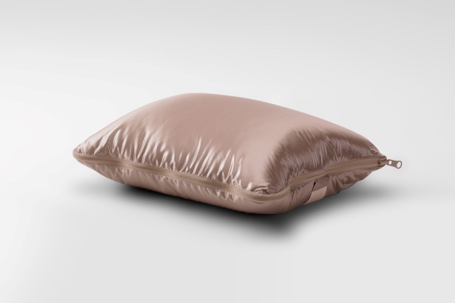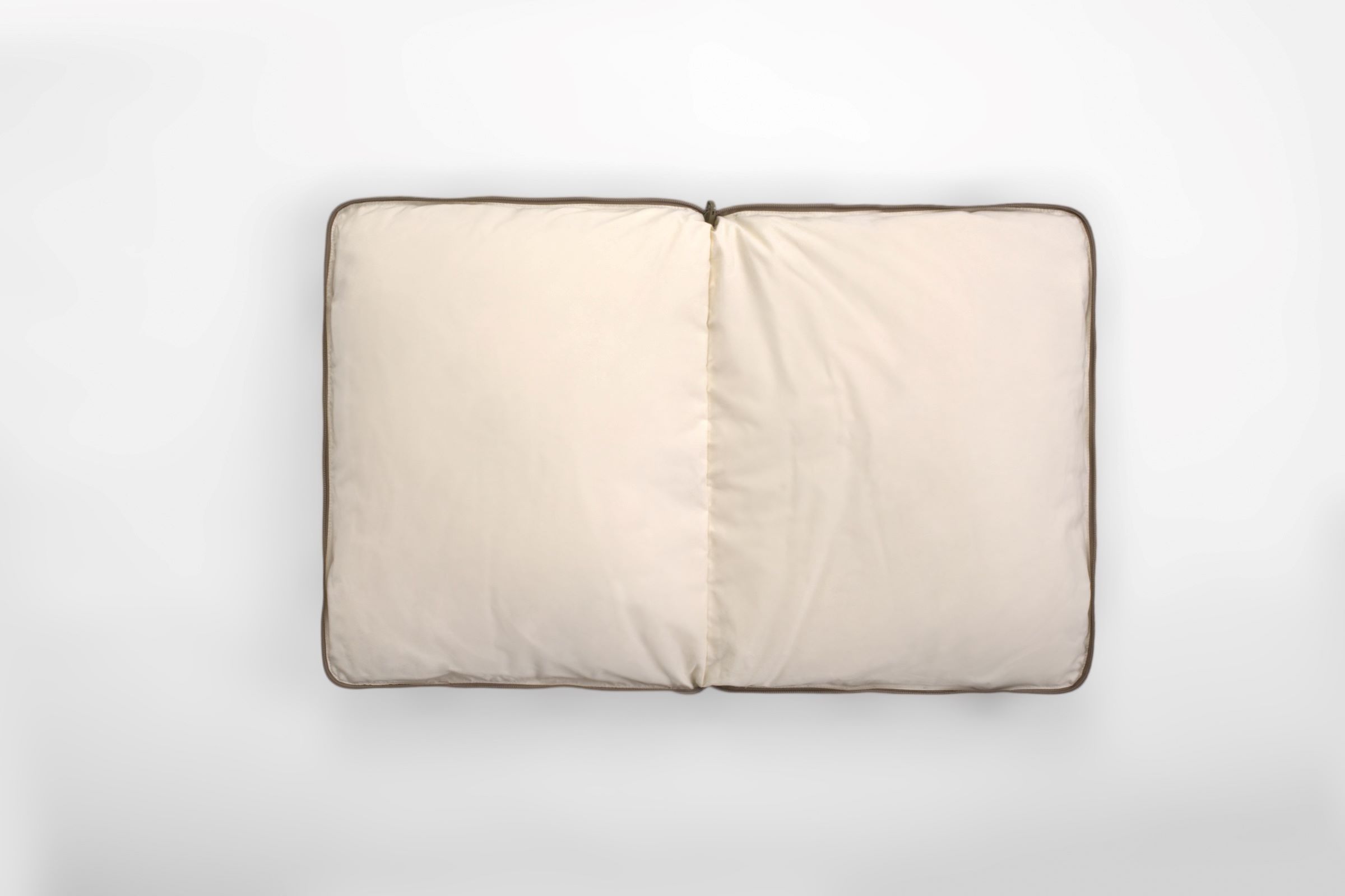 Гусиный пух придает ей невероятную легкость - вес изделия всего 100 г! С помощью специальной ручки-стропы ее можно закрепить на чемодане