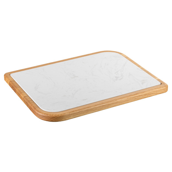 Массивная дубовая разделочная доска премиум-класса имеет красивую мраморную вставку. На ней удобно нарезать разные сорта сыра, а также подавать их на стол. Ножки на нижней части позволяют надёжно зафиксировать изделие на столе во время работы. Разделочная доска, как и другие кухонные аксессуары бренда Legnoart, это гармония функциональности и эстетики, безупречного качества и изысканного итальянского стиля. Технология термообработки древесины, разработанная специалистами Legnoart, придаёт ей совершенно новые свойства, такие как повышенная прочность, устойчивость к влаге, температурным изменениям и механическим повреждениям. Дополнительная обработка биоматериалами придаёт изделиям из термически обработанной древесины стойкость к вредителям.