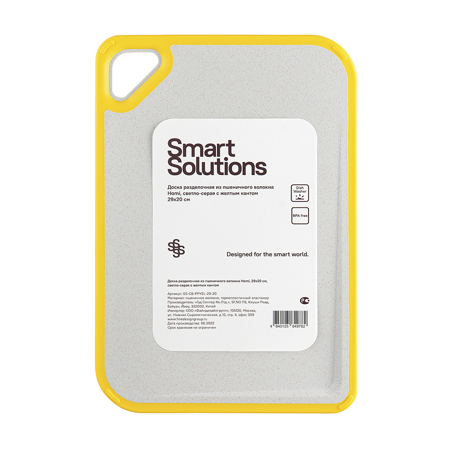 Доска разделочная 29х20см Smart Solutions Homi светло-серая с желтым кантом