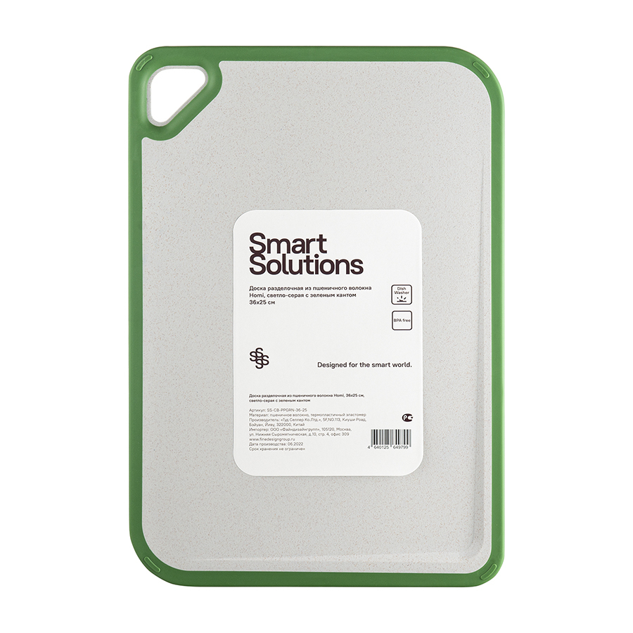Доска разделочная 36х25см Smart Solutions Homi светло-серая с зеленым кантом