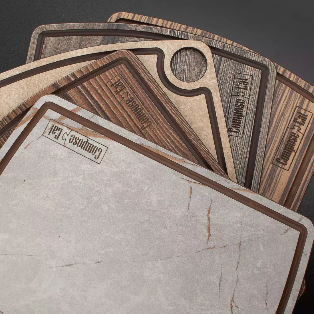 Особенной продукцию компании Compose Eat делает материал, служащий основой для производства. В современном мире высоких технологий и развития производства всевозможных комбинированных материалов возможно все. В том числе и изготовление из бумаги прочной качественной доски с текстурой под натуральную древесину. Именно такие изделия и входят в основной ассортимент продукции бренда. Эти необыкновенные доски характеризуются плотной прочной текстурой и малым весом. В отличие от аналогов, выполненных из массива, они не требуют особого ухода и не подвержены рассыханию и гниению.