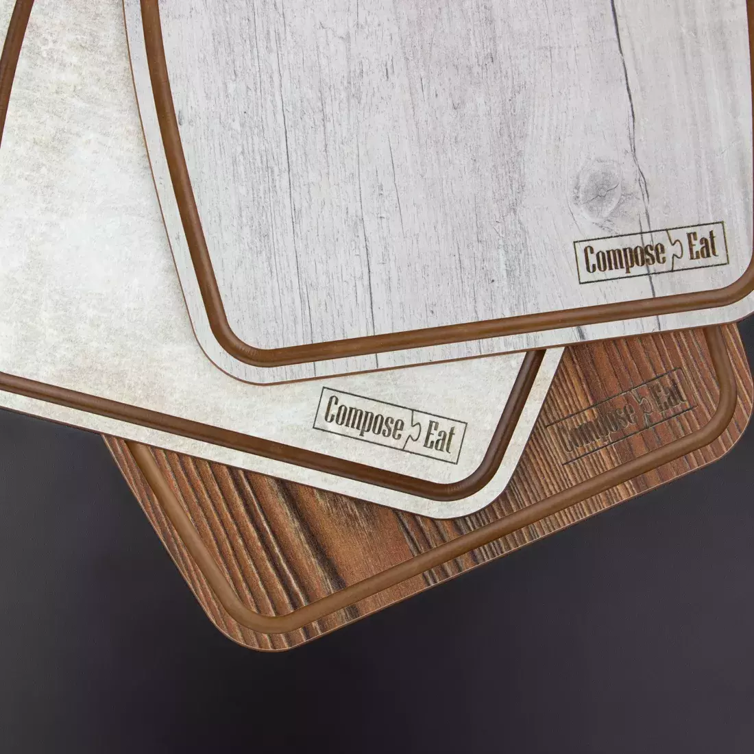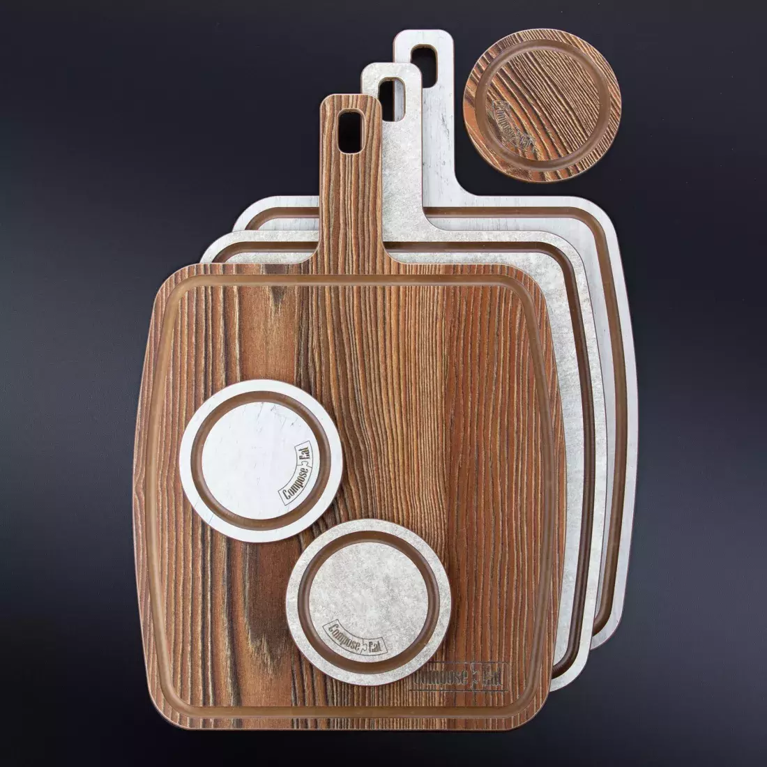 Особенной продукцию компании Compose Eat делает материал, служащий основой для производства. В современном мире высоких технологий и развития производства всевозможных комбинированных материалов возможно все. В том числе и изготовление из бумаги прочной качественной доски с текстурой под натуральную древесину. Именно такие изделия и входят в основной ассортимент продукции бренда. Эти необыкновенные доски характеризуются плотной прочной текстурой и малым весом. В отличие от аналогов, выполненных из массива, они не требуют особого ухода и не подвержены рассыханию и гниению.