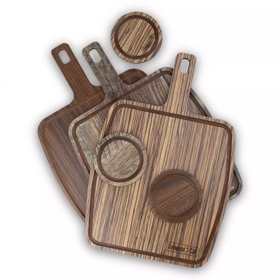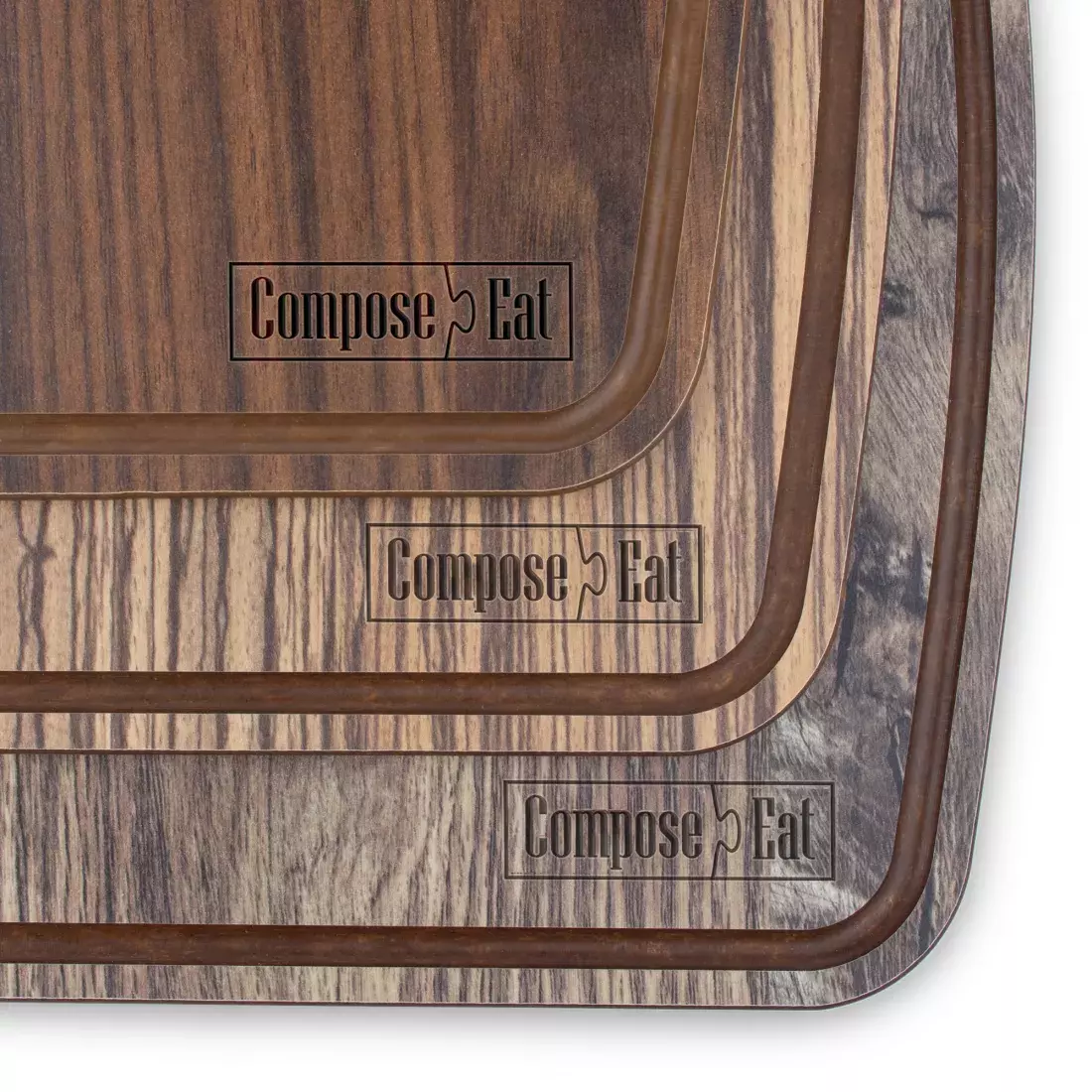 Особенной продукцию компании Compose Eat делает материал, служащий основой для производства. В современном мире высоких технологий и развития производства всевозможных комбинированных материалов возможно все. В том числе и изготовление из бумаги прочной качественной доски с текстурой под натуральную древесину. Именно такие изделия и входят в основной ассортимент продукции бренда. Эти необыкновенные доски характеризуются плотной прочной текстурой и малым весом. В отличие от аналогов, выполненных из массива, они не требуют особого ухода и не подвержены рассыханию и гниению.