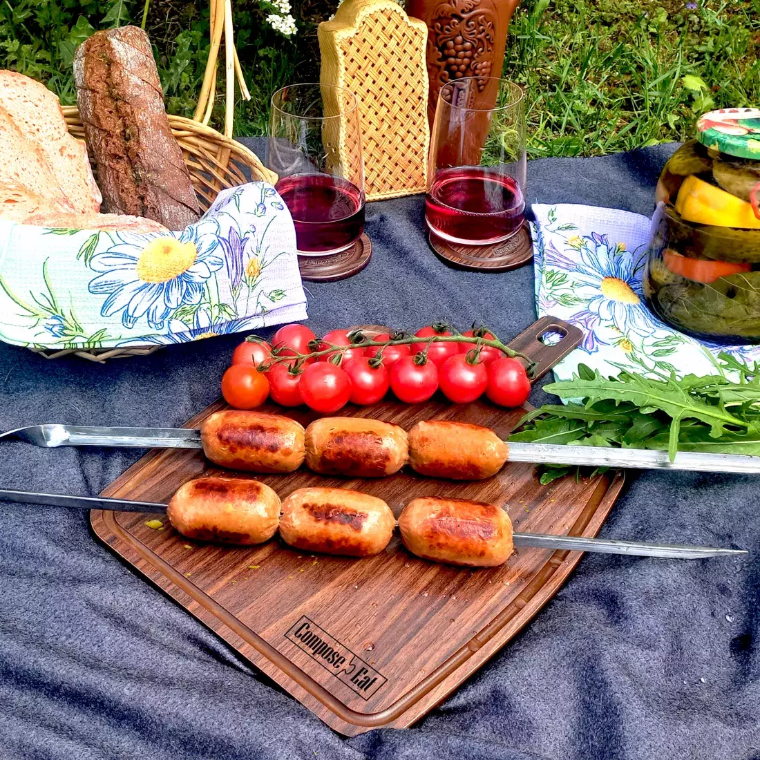 В современной кулинарии существует тенденция использования разделочных досок в качестве сервировочных. И тут изделия от бренда Compose Eat придутся как нельзя кстати. Роскошная текстура под натуральный бук, орех или клен станет идеальным фоном для закусок, сырной или мясной нарезки.