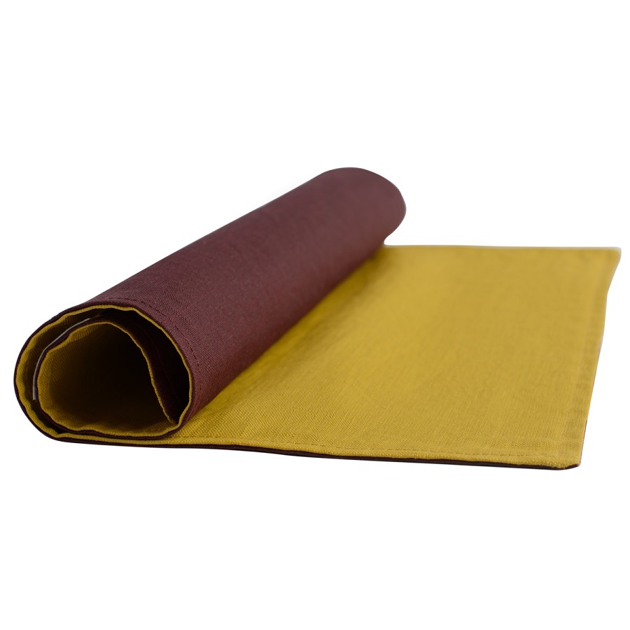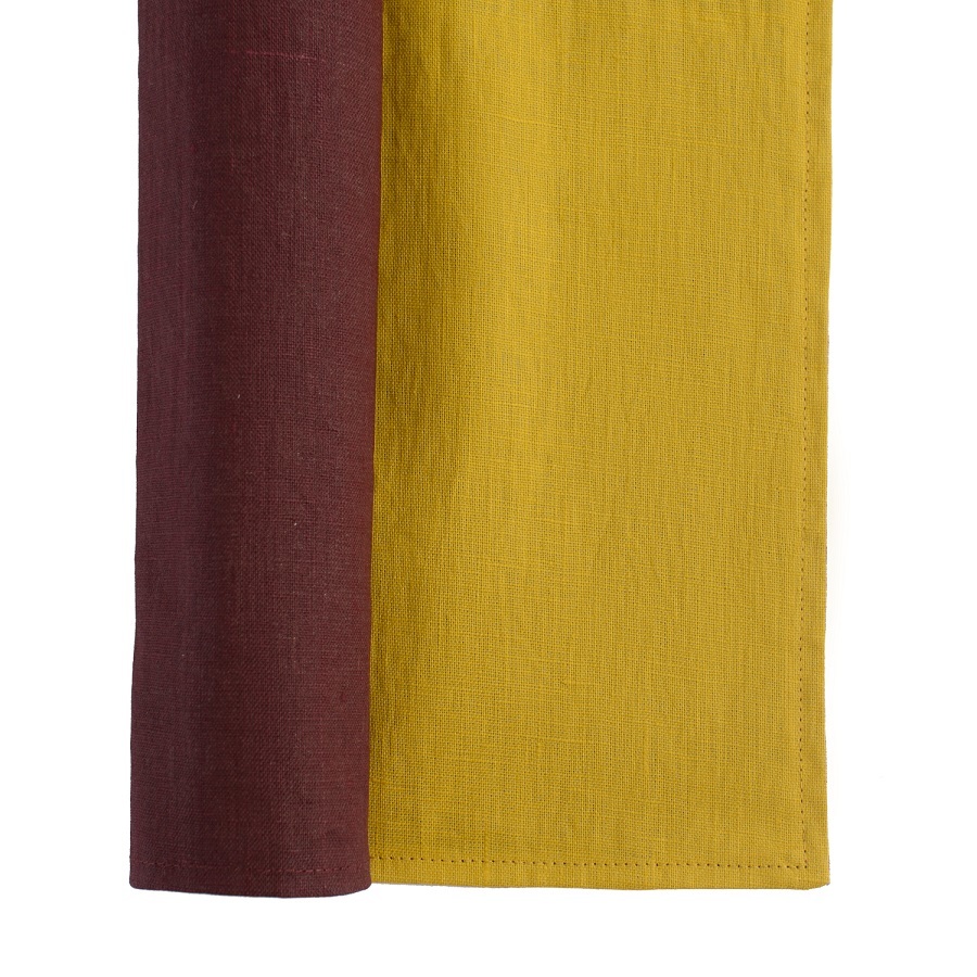 Двухсторонняя салфетка под столовые приборы произведена из прочного умягченного льна. Материал хорошо пропускает воздух и впитывает влагу, а также обладает гипоаллергенными и бактерицидными свойствами. Льняная ткань легко стирается и долгое время сохраняет презентабельный внешний вид.