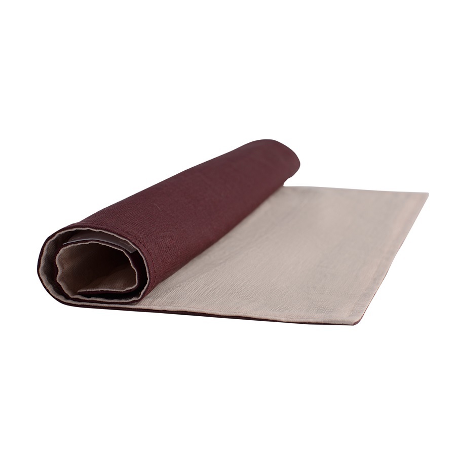 Двухсторонняя салфетка под столовые приборы произведена из прочного умягченного льна. Материал хорошо пропускает воздух и впитывает влагу, а также обладает гипоаллергенными и бактерицидными свойствами. Льняная ткань легко стирается и долгое время сохраняет презентабельный внешний вид.