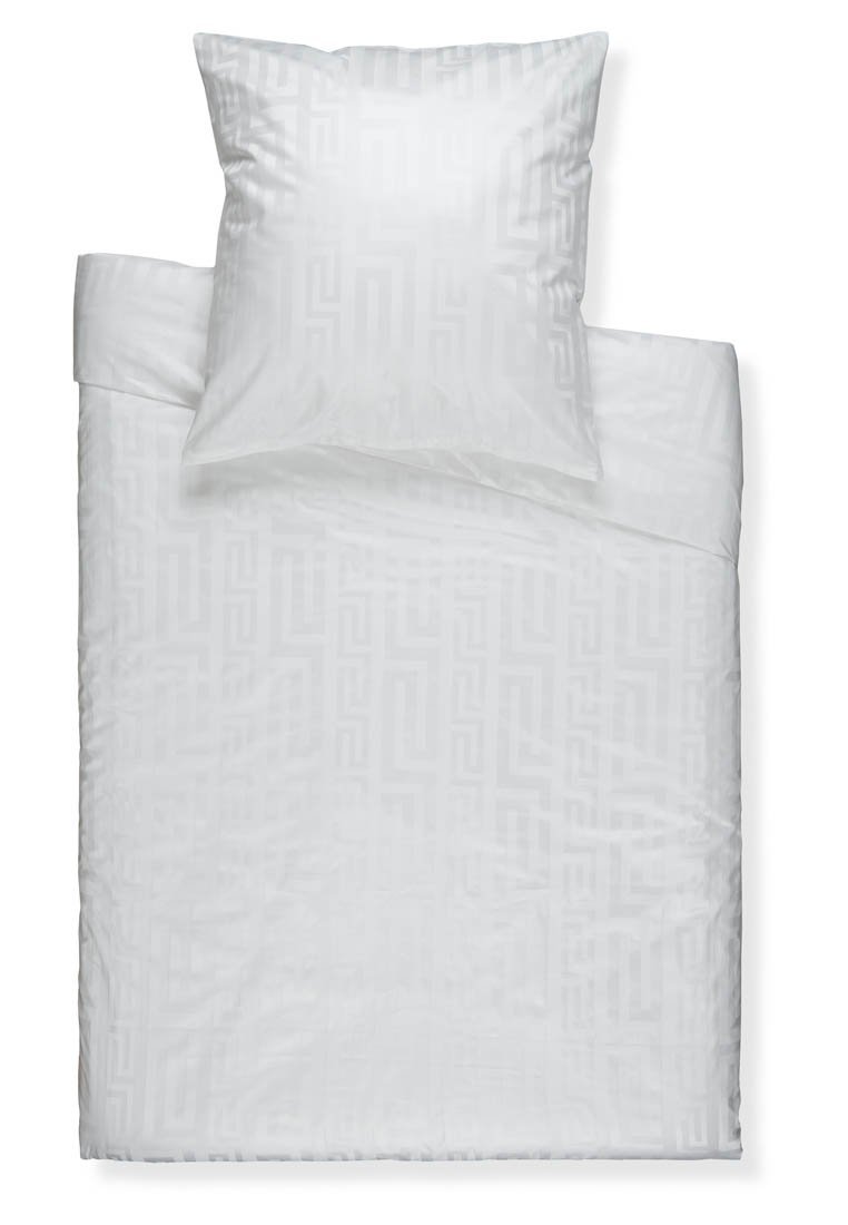 Очень красивый и нежный пододеяльник белого цвета с рисунком в виде графических узоров также белого цвета, но с легким блеском. В целом пододеяльник смотрится очень эффектно и гармонирует с разным постельным бельем. Изготовлен из сатина.