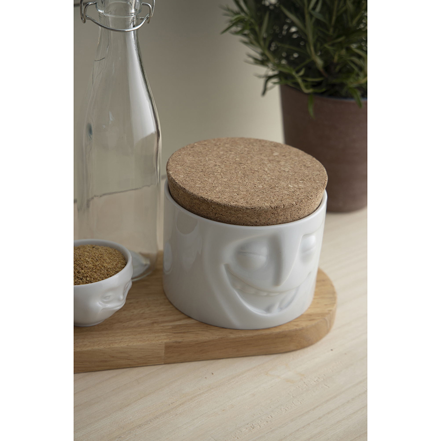 Емкость выполнена из высококачественного фарфора. Плотная крышка — из натуральной пробки. Поставляется в красивой подарочной упаковке.