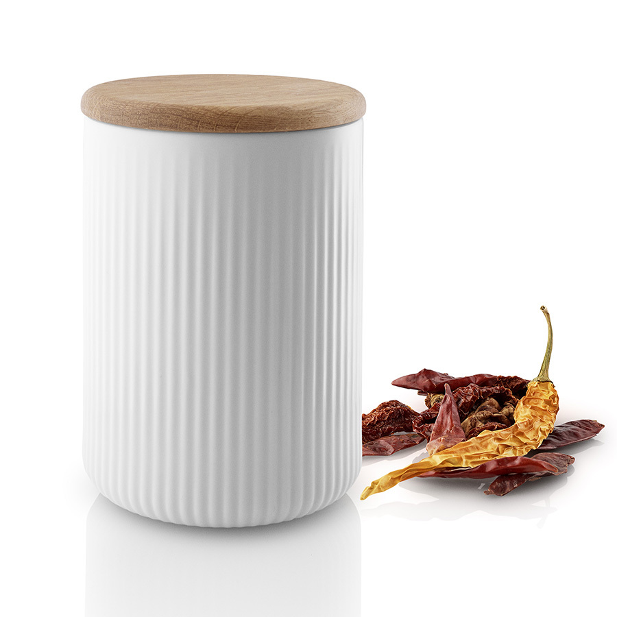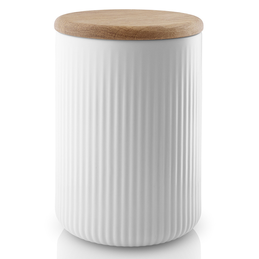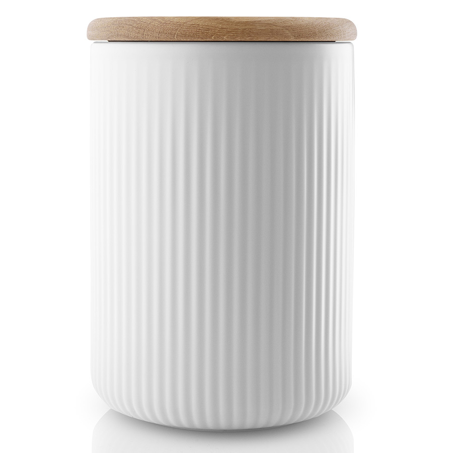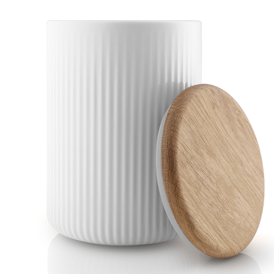 Емкость для хранения Legio Nova обеспечит идеальный порядок на вашей кухне. Изделие подходит для сахара, зерна, муки и любых других ингредиентов, часто используемых в приготовлении пищи. При оформлении емкости дизайнеры используют деликатную рифленую отделку. Аксессуар выполнен из высококачественного фарфора белого цвета. Банка снабжена дубовой крышкой с силиконовым уплотнителем. Благодаря этому продукты сохранят вкус и будут защищены от влаги. Емкость пригодна для мытья в посудомоечной машине, а крышку производитель рекомендует протирать влажной тканью.Гарантия на фарфоровую посуду коллекции Legio Nova – 10 лет.