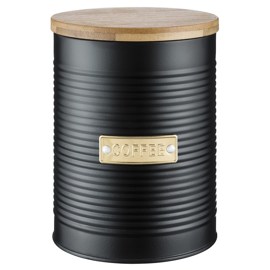 Емкость для хранения кофе Otto поможет организовать рабочее пространство на вашей кухне. Эргономичный контейнер выполнен из эмалированной стали, стойкой к коррозии и деформации. Бамбуковая крышка с воздухопроницаемым уплотнителем из силикона продлевает свежесть продуктов и защищает их от воздействия влаги. При создании изделия дизайнеры используют золотистый декор, который безупречно сочетается с матовым покрытием черного цвета. Благодаря этому емкость добавит элегантности классическому и современному интерьеру кухни.Отзывы