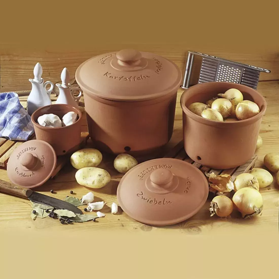 Традиции качества немецкой глиняной посуды нашли своё отражение в практичных ёмкостях для хранения чеснока, лука или картофеля, предлагаемых компанией Roemertopf. Если вы цените натуральные, экологически чистые материалы, обязательно обратите внимание на эти удобные изделия.