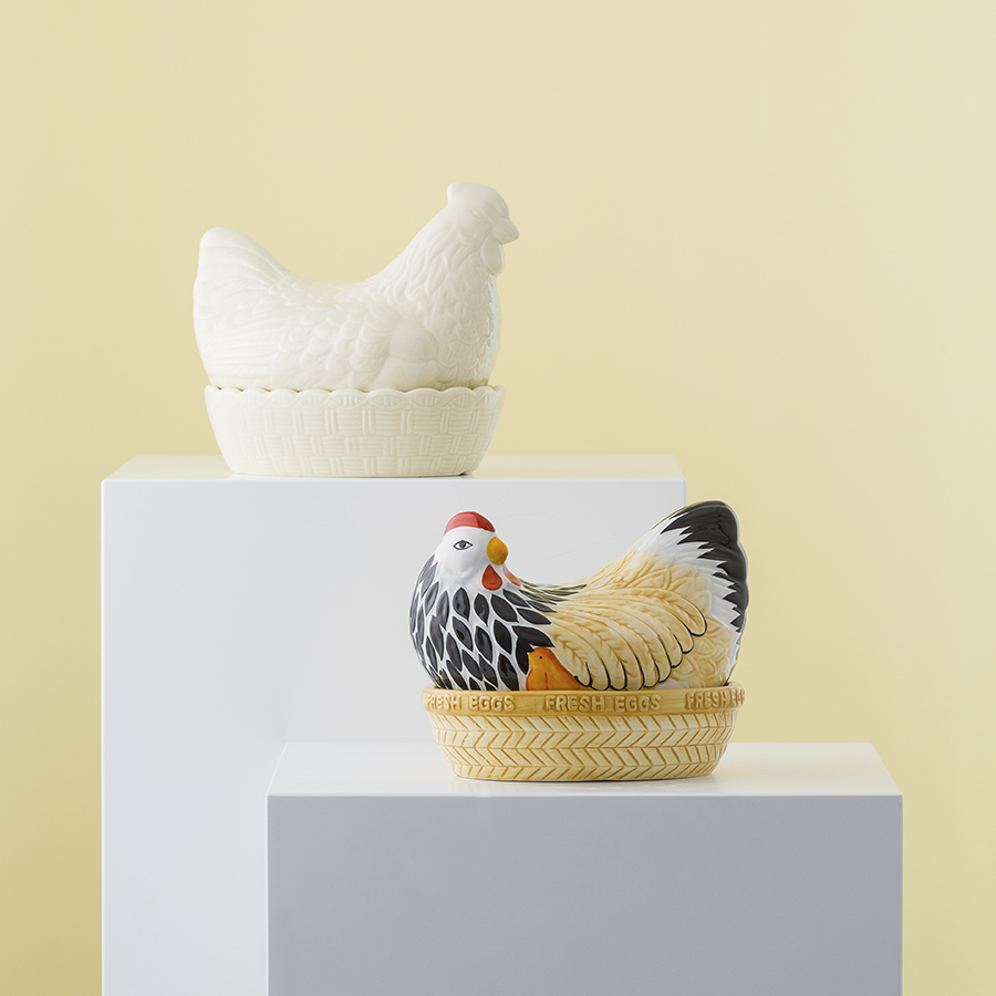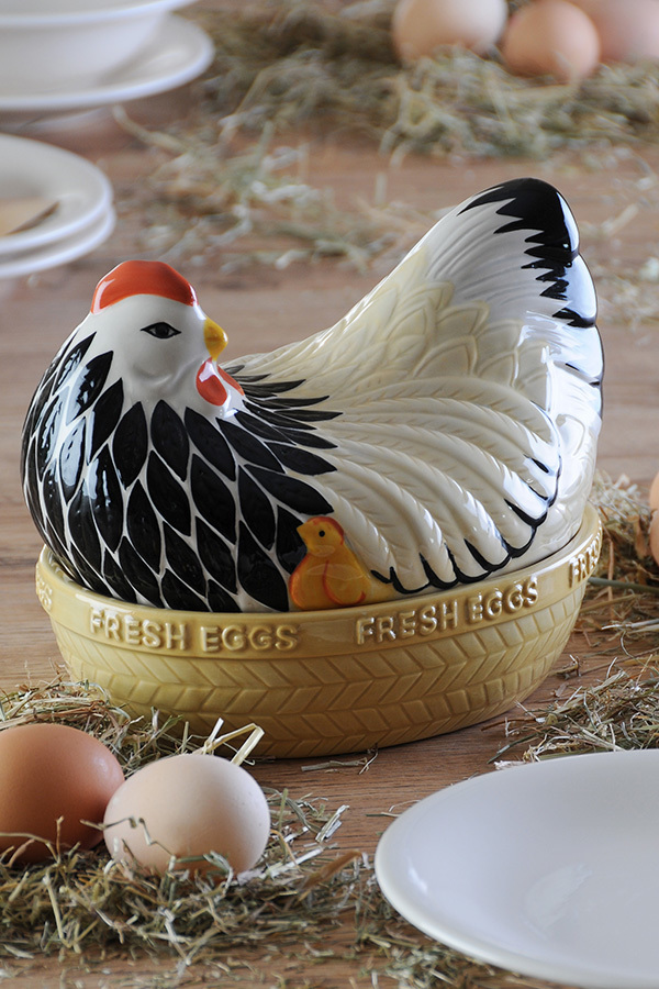 Оригинальная подставка для яиц Mother гармонично впишется в интерьер любой кухни. Дизайнеры создали аксессуар, воодушевляясь красотой британских фермерских дворов. Ёмкость в виде курицы на гнезде предназначена для хранения свежих яиц. Помимо этого подставка подходит для подачи фруктов, овощей и других продуктов. Изделие выполнено из качественной керамики с глянцевой поверхностью, которая отличается прочностью и стойкостью к сколам. Подставку можно мыть в посудомоечной машине.