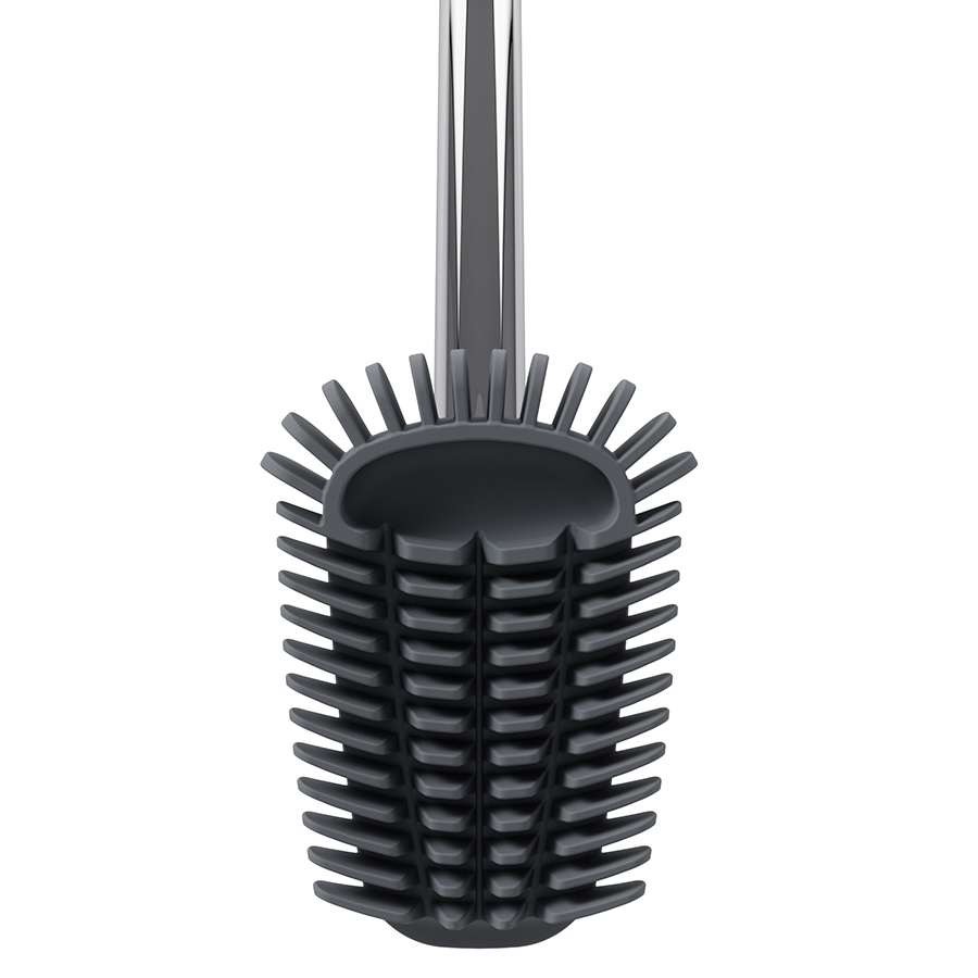Ершик с гибкой щеткой упростит процесс уборки.Прорезиненная щетина предотвращает появление вызывающих запах бактерий и грибка и не царапает поверхность. При снятии щетки с держателя крышка остается поднятой и закрывается автоматически при возвращении щетки на место. Аксессуар надежно фиксируется на полу или стене благодаря вакуумной системе крепления. Ершик устойчив к ржавчине.