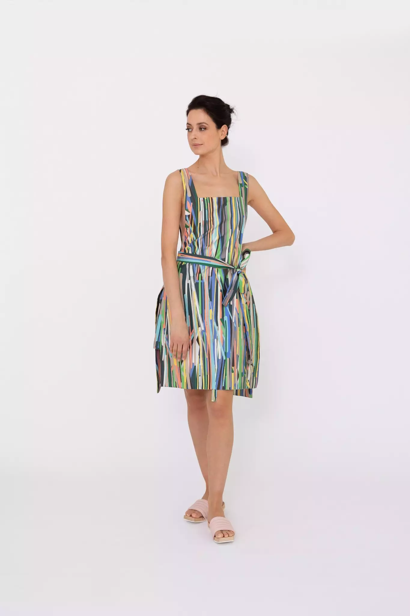Стильный фартук, украшенный орнаментом из разноцветных полос фирменной палитры Mollen. Элегантный аксессуар выполнен в виде платья, и неуязвим для любых видов загрязнений, благодаря покрытию из тончайшей нанопленки. Модный крой и дизайнерский рисунок на ткани превращают фартук в модную и функциональную уличную одежду. Нанопленка не меняет структуру ткани, которая остается мягкой и комфортной для тела. Даже после многократных стирок покрытие отлично защищает ткань от внешнего воздействия.