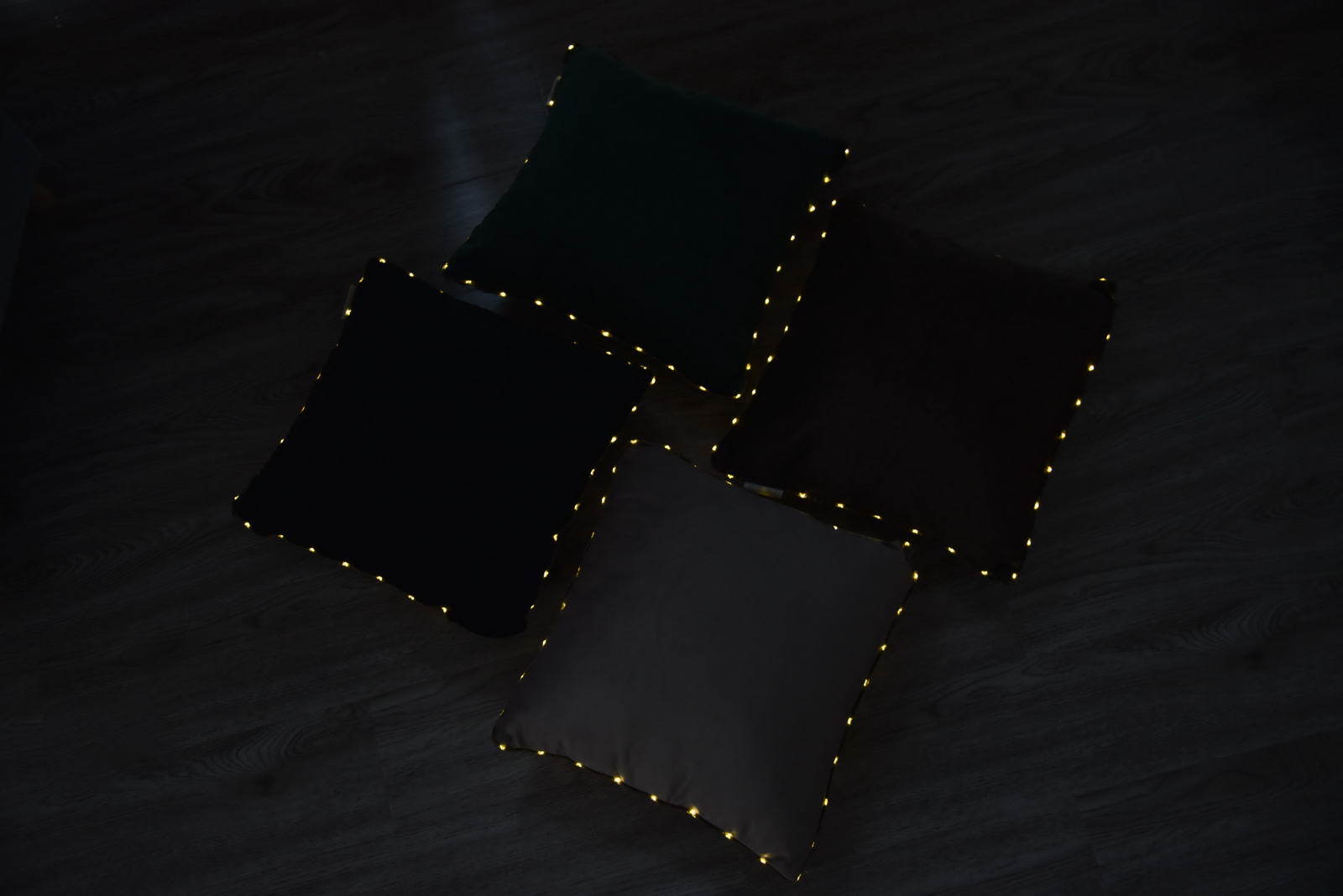 Наволочка декоративная (бархат) Отделка: золотистый кант с встроенной светодиодной подсветкой на батарейке Состав: 100% вискоза