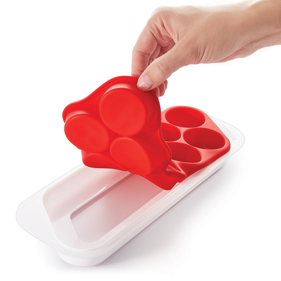 Форма выполнена из силикона, за счет чего «рожицы» легко изымаются из отверстий. Специальный пластиковый лоток предотвратит переливы и позволит легко перенести емкость в морозильную камеру.