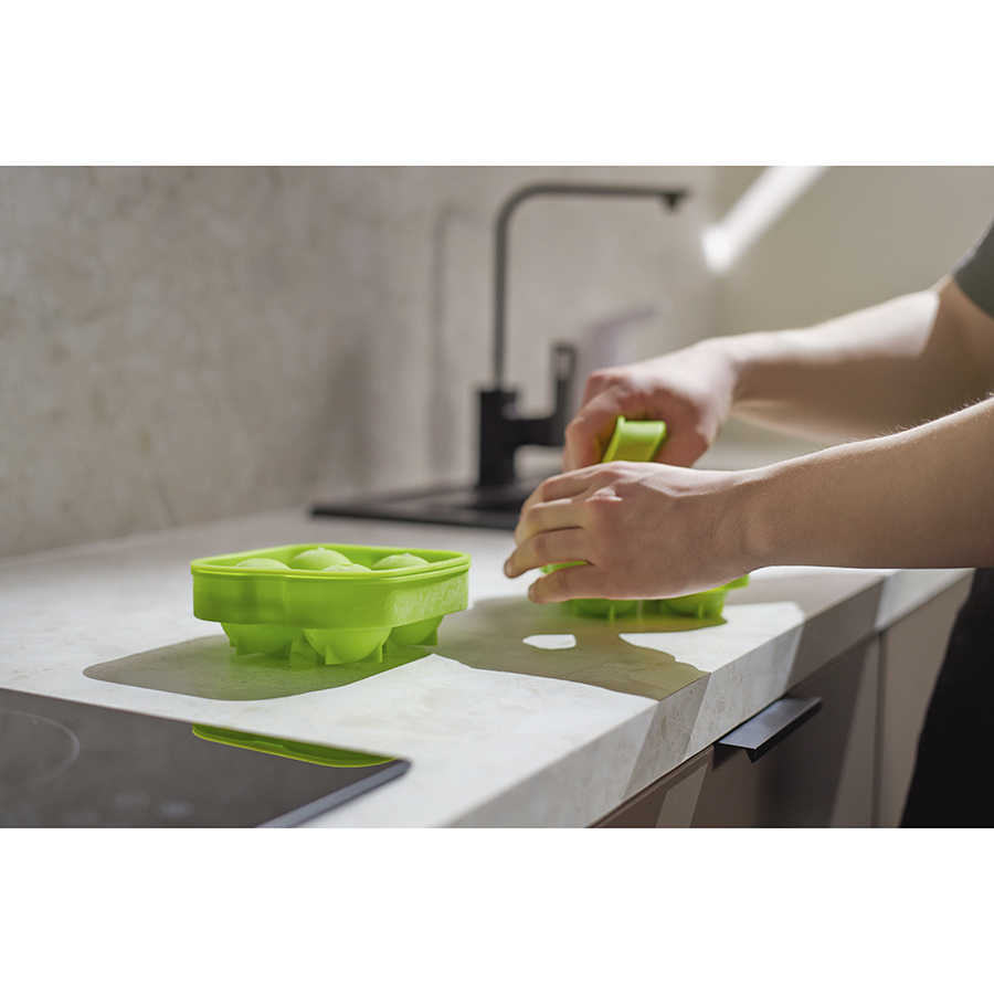 - Силиконовая форма обладает хорошей гибкостью, что позволяет легко извлекать ледяные шары без нарушения их целостности.