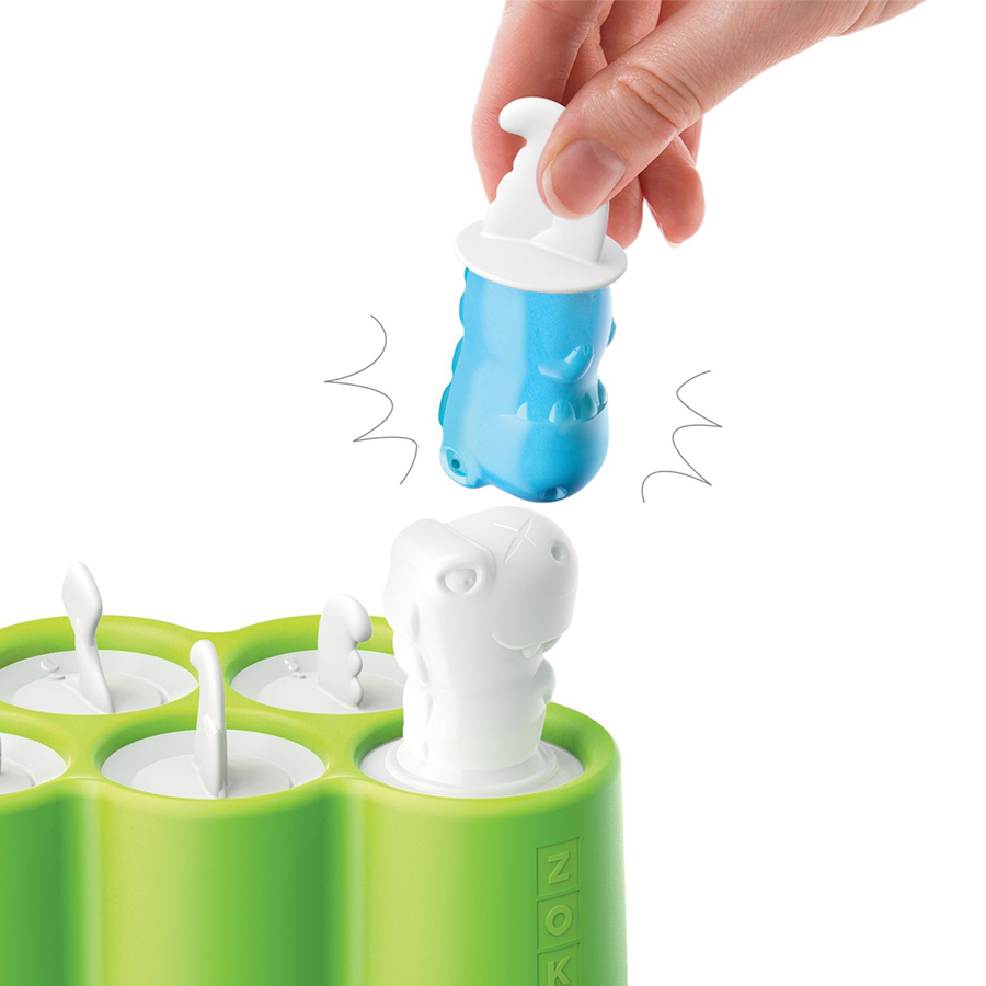 С компактной и удобной формой Dinosoaur Pop Mold приготовить домашний фруктовый лед стало еще проще! Порадуйте своих близких и друзей оригинальными лакомствами в виде забавных динозавров. Теперь каждому члену семьи достанется свой сказочный персонаж, и не придется путаться в том, кому и какое лакомство принадлежит.