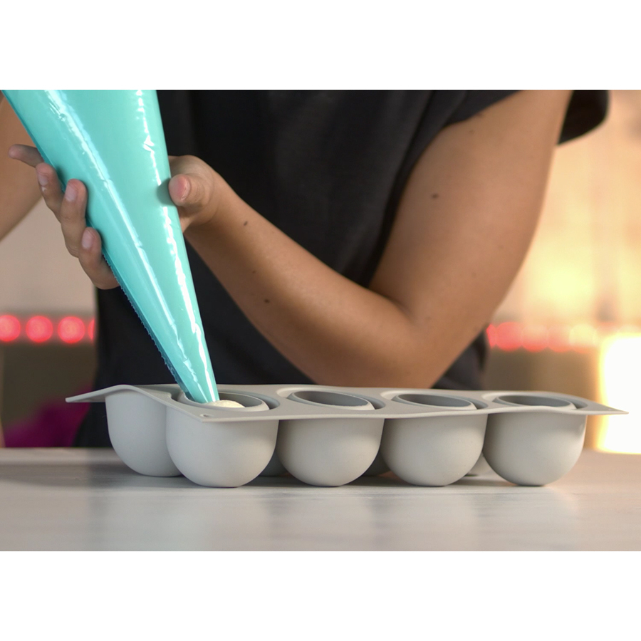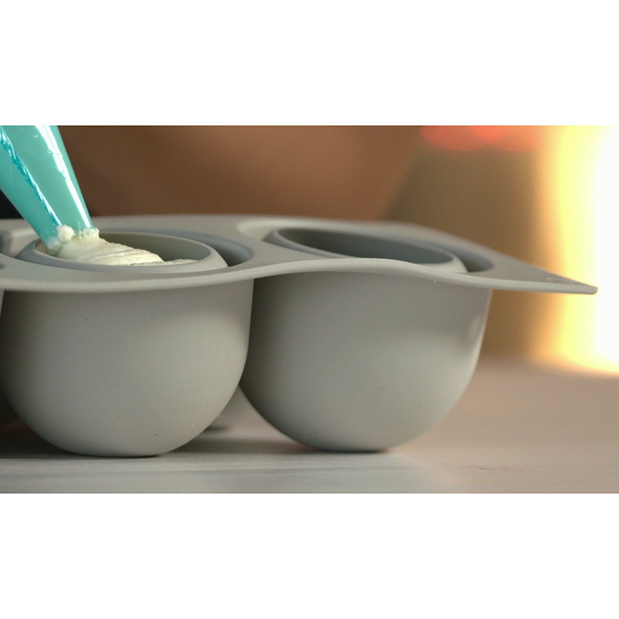 Удивите гостей домашними пирожными сферической формы.Дополнительная рамка придает десерту округлую форму. Аксессуар выдерживает температуру от - 60 до +, 230 °С. Силикон не содержит вредный бисфенол-А и соответствует европейским стандартам качества. Он не имеет запаха и не дымится во время готовки. Материал гибкий, прочный, устойчивый к перепадам температур. Форма выдерживает до 3000 использований. Перед использованием необходимо смазать изделие маслом. Диаметр ячейки - 6,2 см.