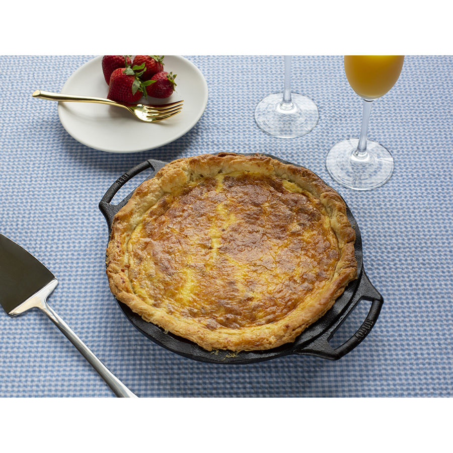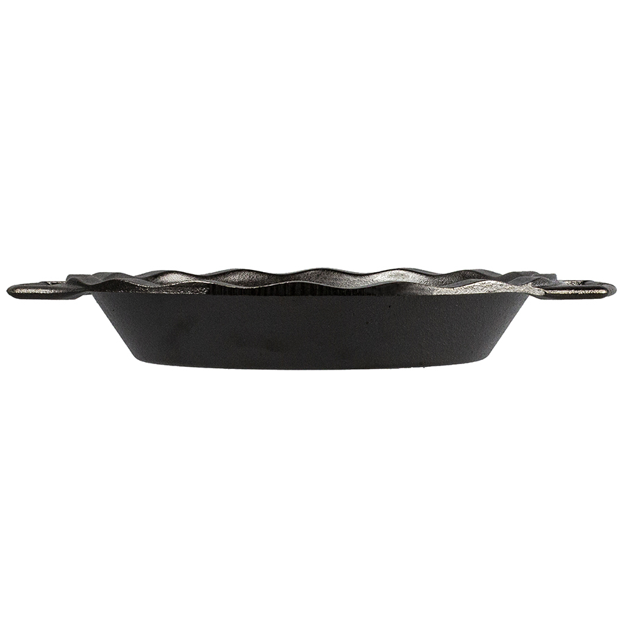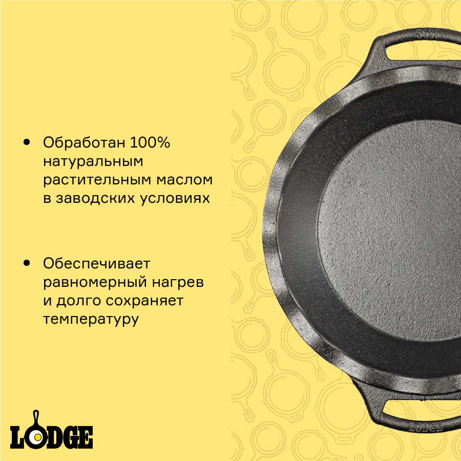 Чугун отличается повышенной прочностью, обеспечивает равномерное распределение тепла и превосходно удерживает температуру. Производитель добивается естественного антипригарного слоя путем смазывания изделий натуральным растительным маслом и прокаливанием. Важно: изделие не предназначено для использования на плите.