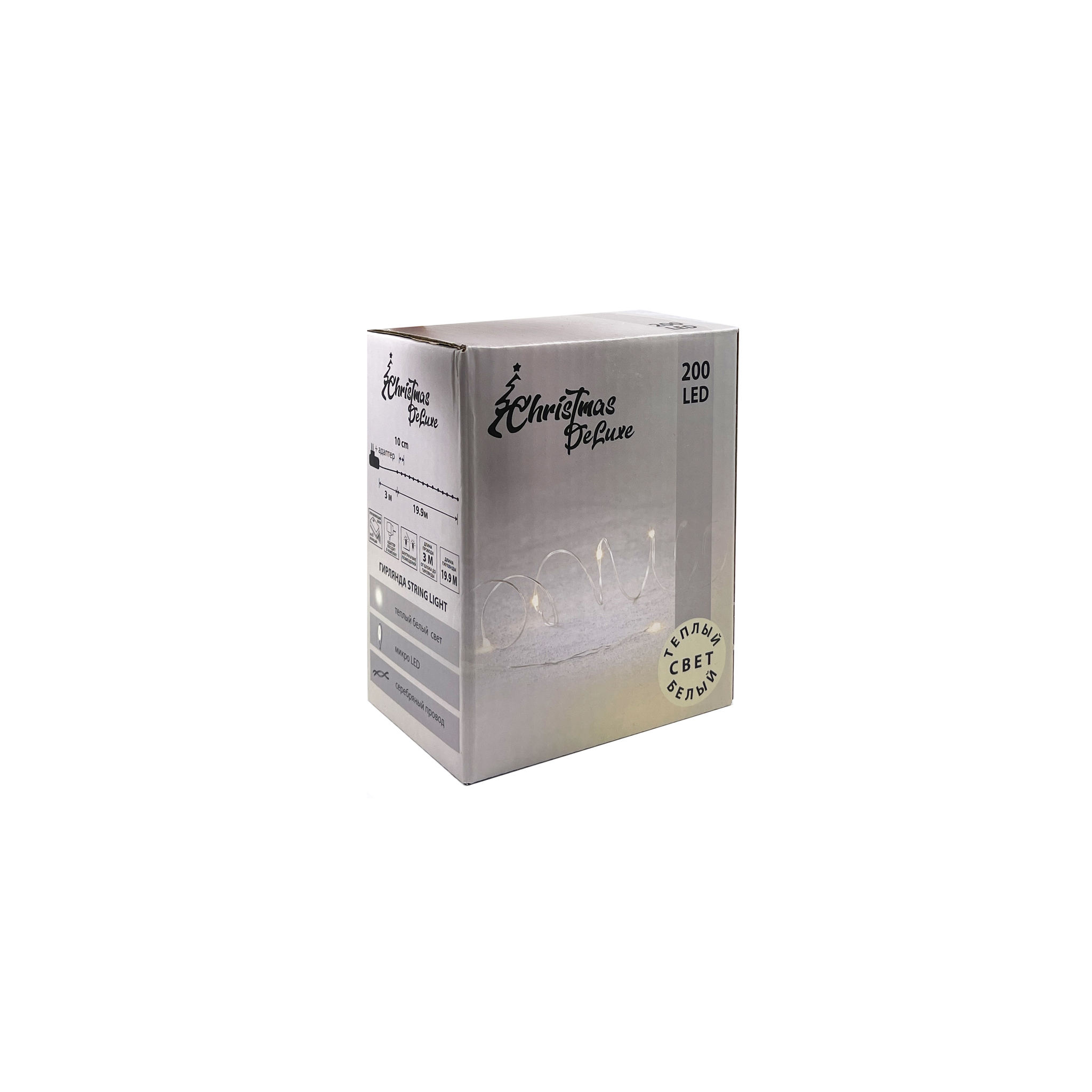 Гирлянда String Light Роса на серебряном проводе. Теплый белый свет. 200 ламп. 8 функций. Длина 2000 см.