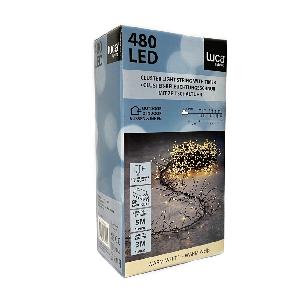 Гирлянда Кластер на черном проводе теплый белый свет 300см 480 ламп 8 функций Luca Lighting