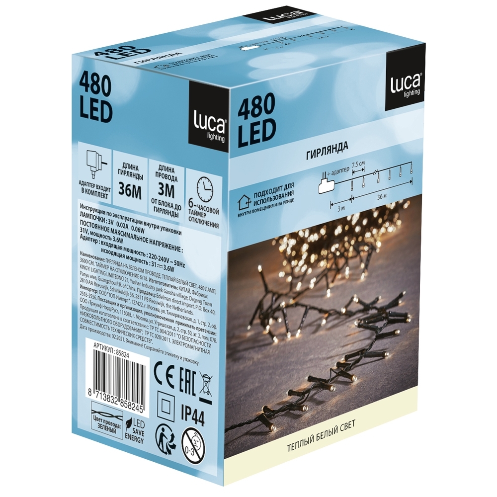 Luca – новое имя на рынке освещения. Вот уже несколько лет огоньки и электрогирлянды Luca представлены во всех магазинах России. Очень важно, что при выборе товара на фабриках мы всегда обращаем внимание на важные детали в электрике. Основная из которых, естественно, безопасность наших детей. Все наши гирлянды имеют адаптеры IP44 и выше, либо защищенный от попадания влаги отсек для батареек. Право носить имя Luca заслужили только лучшие товары с лучших мировых фабрик, а контроль качества происходит в голландском офисе Edelman.