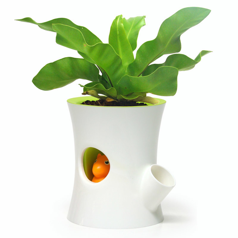 Милая белочка всегда подскажет, если в горшке закончится вода и растение нужно полить. Она высовывается из дупла, когда в горшке много воды, и постепенно опускается, когда она заканчивается.