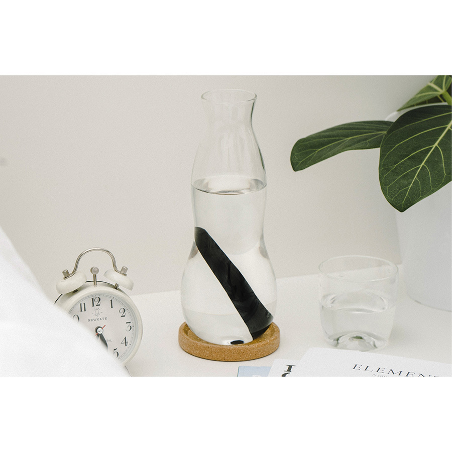 Графин установлен на удобную подставку из натуральной пробки. В наборе также есть фирменный угольный фильтр Binchotan от Black&Blum, срок службы которого составляет 6 месяцев. Положите его в обычную воду и оставьте на 6-8 часов. Уголь впитает все вредные вещества, наполнит ее полезными минерами и выровняет уровень Ph. Используйте фильтр таким образом 3 месяца, затем прокипятите 10 минут в горячей воде и используйте еще 3 месяца. По истечении этого времени уголь может быть утилизирован в качестве удобрения для комнатных растений. Графин и тумблер можно мыть в посудомоечной машине на верхней полке.