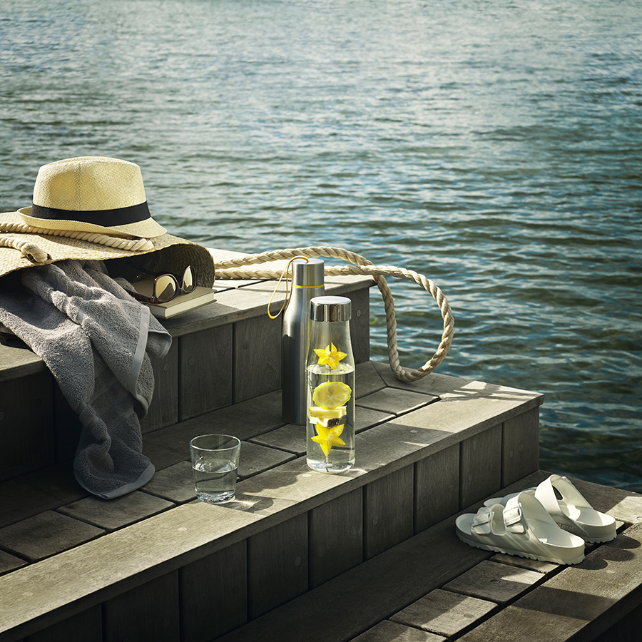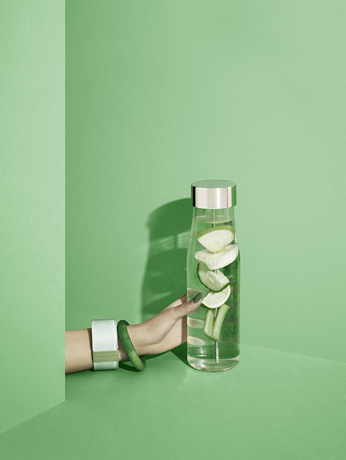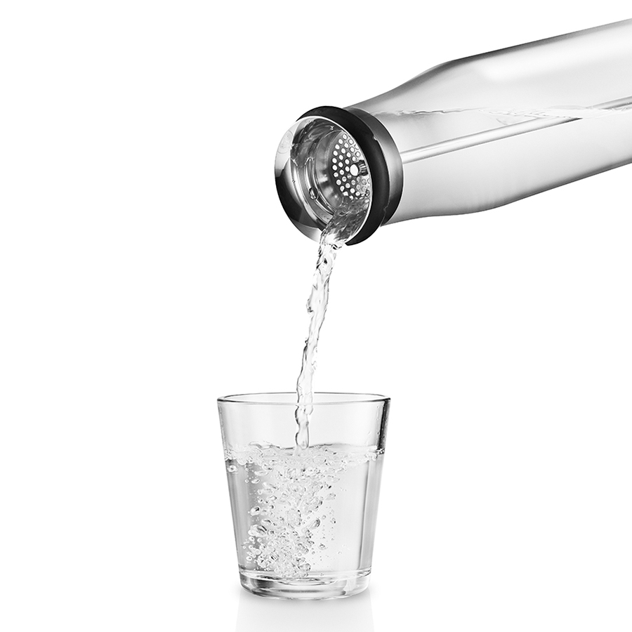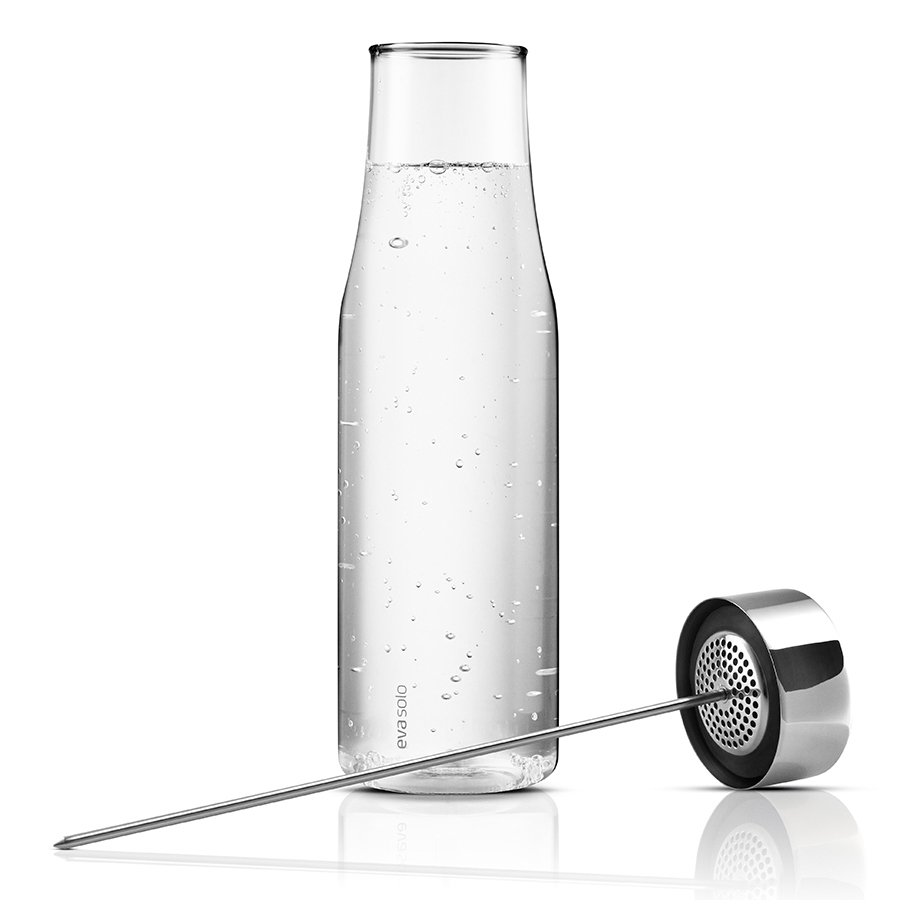 Придайте воде уникальные аромат и вкус! Элегантный графин объемом 1 литр с системой dripfree - 100%, без капель при наливании. Удобный заостренный стержень для фруктов, овощей и зелени - отличное решение для красивой подачи любимых напитков. Графин легко умещается в дверце холодильника, а крышечка из нержавеющей стали надежно защитит содержимое бутылки от посторонних запахов. Идеален также для горячих напитков. Боросиликатное стекло выдерживает температуры от -70°С до 530°С.