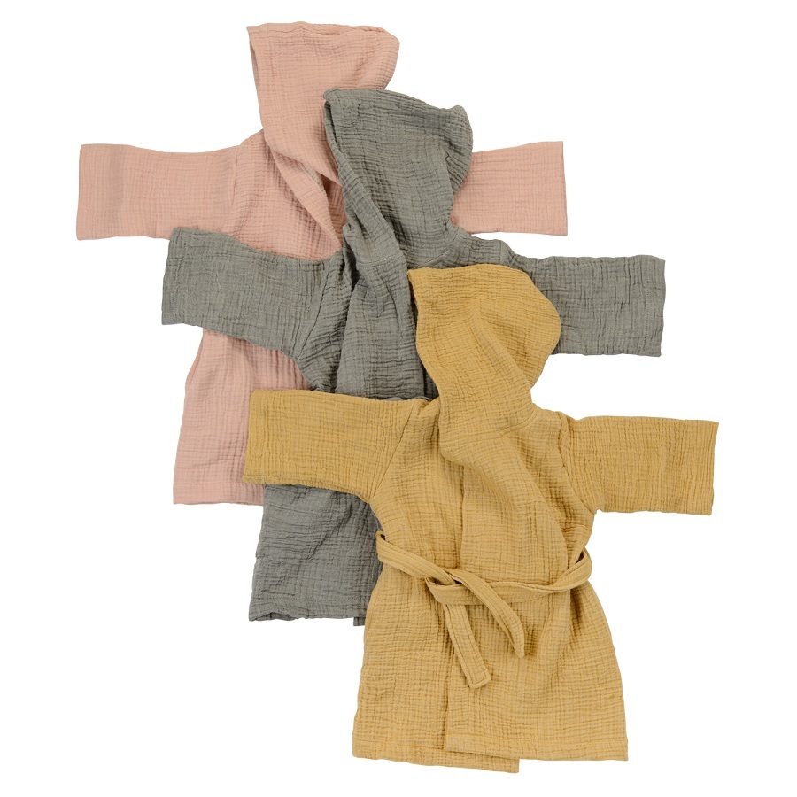 Гипоаллергенный органический хлопок хорошо впитывает влагу и пропускает воздух, что особенно важно при контакте с детской кожей. Он прочнее и мягче обычного, выдерживает больше стирок. Модель представлена несколькими размерами в трех цветах: пыльная роза, серый, горчичный.