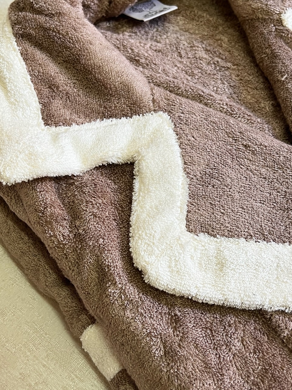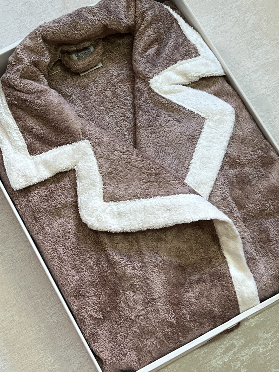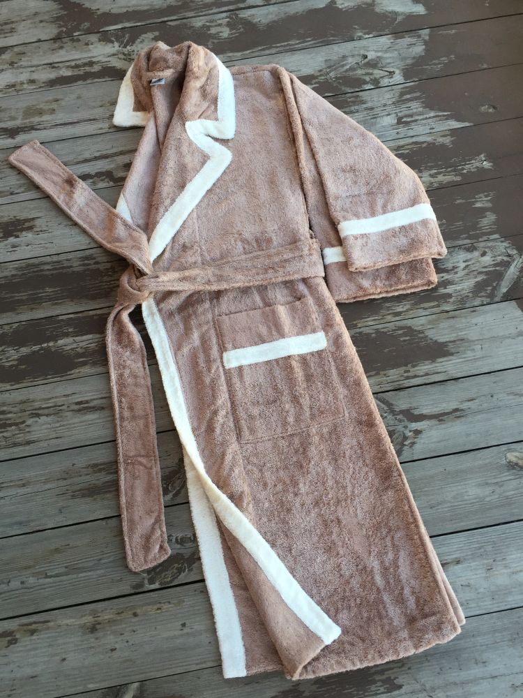 Роскошный мужской халат из ткани шелковая махра от лучших производителей халатов в Италии - бренда Vanna Vannucchi. Халат чрезвычайно приятен к телу, весомый, отлично впитывает влагу. Состав: 70% выжимка из белой древесины, 30% хлопок.