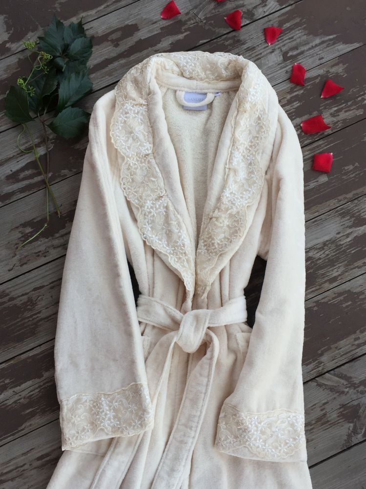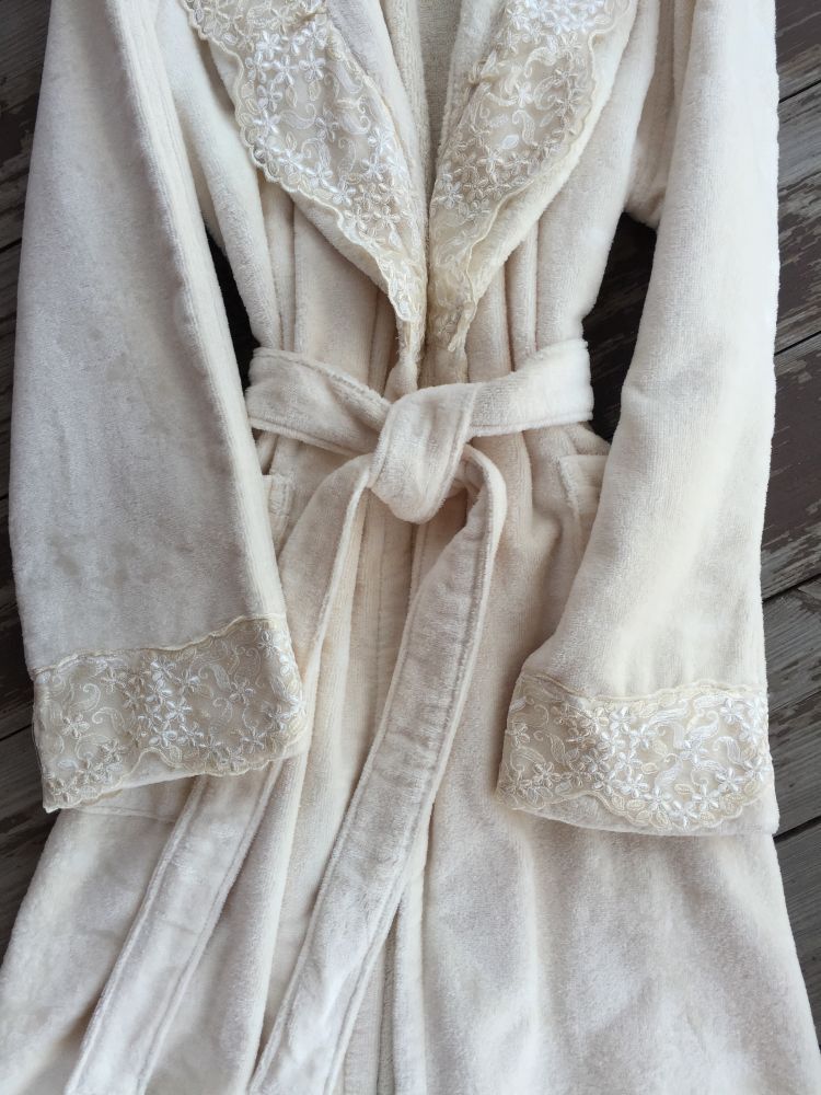 Итальянский женский халат из высококачественного хлопка с отделкой нежным кружевом.