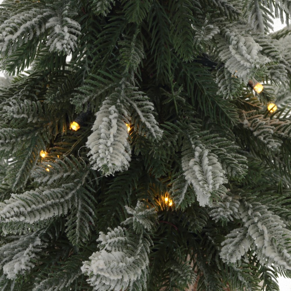 Эта искусственная ель высотой 56 см доказывает, что роскошь может быть компактной. Wintergreen создал модель невероятной визуальной насыщенности, где густые зеленые и белые ветви, выполненные из полимера, текстиля, дерева и металла, образуют богатую, объемную крону. Кажется, будто каждую иголочку создавали вручную. Встроенная подсветка, подобно сиянию драгоценностей, высвечивает эту сложную фактуру, заставляя металл мягко поблескивать, а текстиль — отбрасывать теплые тени. Это центральное украшение праздничного стола или каминной полки.