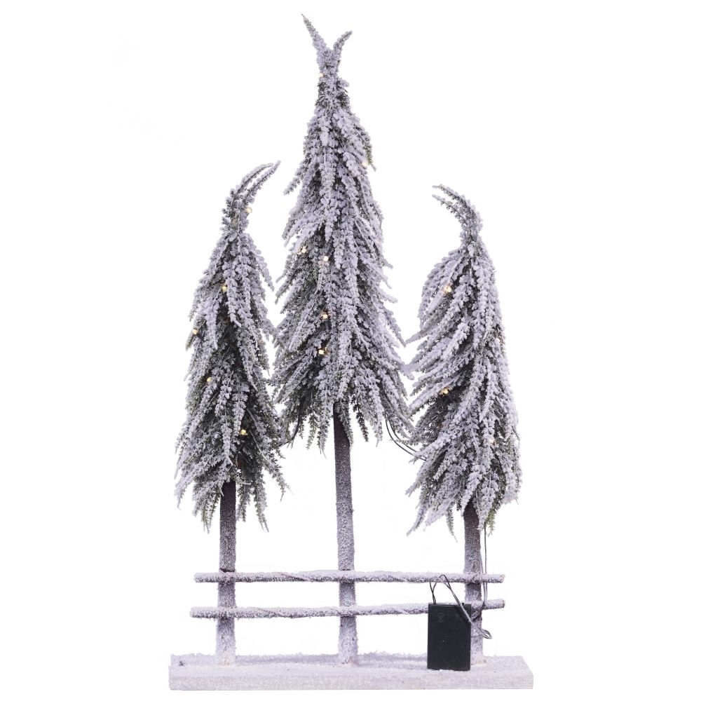 Праздничный декор может быть плоским и от этого не менее эффектным. Эта уникальная искусственная композиция от Wintergreen высотой 76 см примечательна своей необычной формой — она напоминает вытянутую декоративную пластину или стилизованное дерево, предназначенное для настенного или наклонного размещения. Сочетание зеленых и белых элементов из полимера, текстиля, дерева и металла создает сложный графический рисунок. Встроенная подсветка подчеркивает этот рисунок, превращая композицию в световое панно, которое может висеть на стене или стоять на узкой поверхности, подобно современной скульптуре.