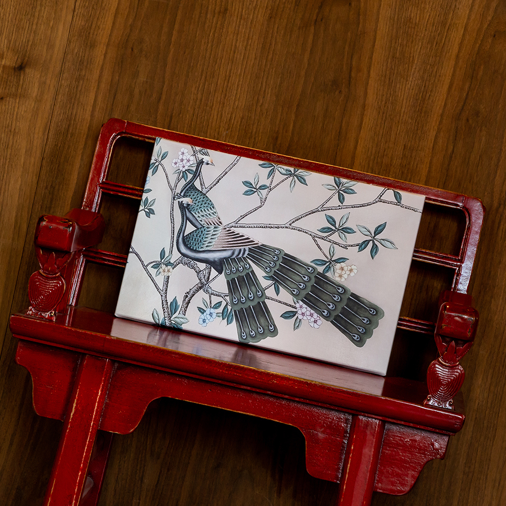 Ветки сакуры, цветы камелии и пара императорских павлинов на картине призваны передать дух Поднебесной – именно туда в этом сезоне ведут интерьерные дороги. Картина недвусмысленно намекает на стиль шинуазри в интерьере. Словом, у поклонников этого дизайнерского жанра в этом сезоне мечты не только голубые, но и золотые.