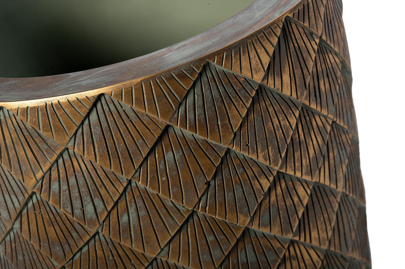 Декоративное кашпо с геометричным орнаментом перенесет вас в атмосферу восточной роскоши. Его рельефная поверхность, имитирующая переплетение драгоценных нитей, создает неповторимый узор, который притягивает взгляд. Это кашпо станет изюминкой вашего интерьера или станет прекрасным подарком для ценителей красоты и изысканности.