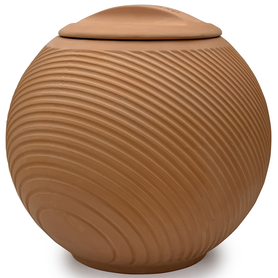 Шарообразное глиняное кашпо поможет создать оригинальную зеленую композицию.