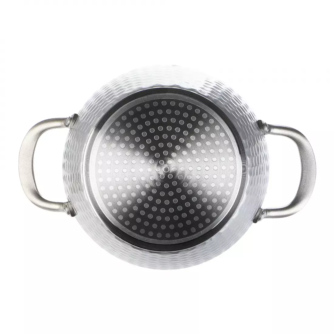 В основе каждого изделия этой группы товаров Kitchen Star лежит алюминий. Этот сплав, помимо превосходной пластичности и малого веса, обладает отличными показателями теплопроводности. Он быстро и равномерно нагревается даже от самого небольшого источника тепла, после чего распределяет температуру по всему корпусу. Такие характеристики обеспечивают создание внутри кастрюли идеальных условий для термической обработки любых продуктов. В них одинаково хорошо, а, главное, быстро, готовятся и нежные овощи, и жилистое мясо в собственном соку.