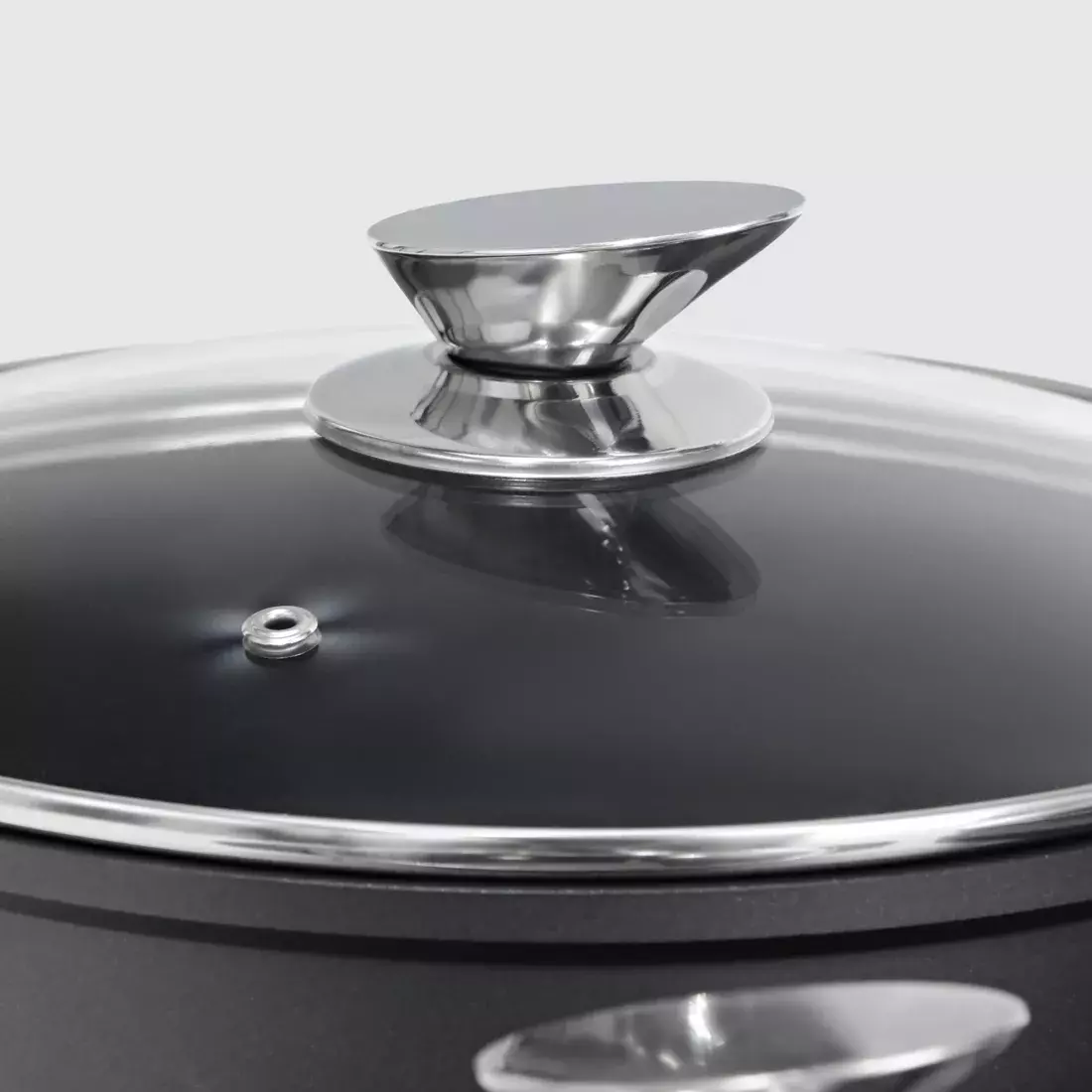 Внутренняя поверхность кастрюль Kitchen Star покрывается особым антипригарным слоем с включением мрамора. Подобный материал не только обладает невероятно гладкой структурой, позволяющей использовать минимум масла в процессе приготовления блюд, но еще и отличается превосходной степенью устойчивости к механическим повреждениям. Кроме того, он великолепно выглядит и служит дополнительным украшением изделий этой группы.