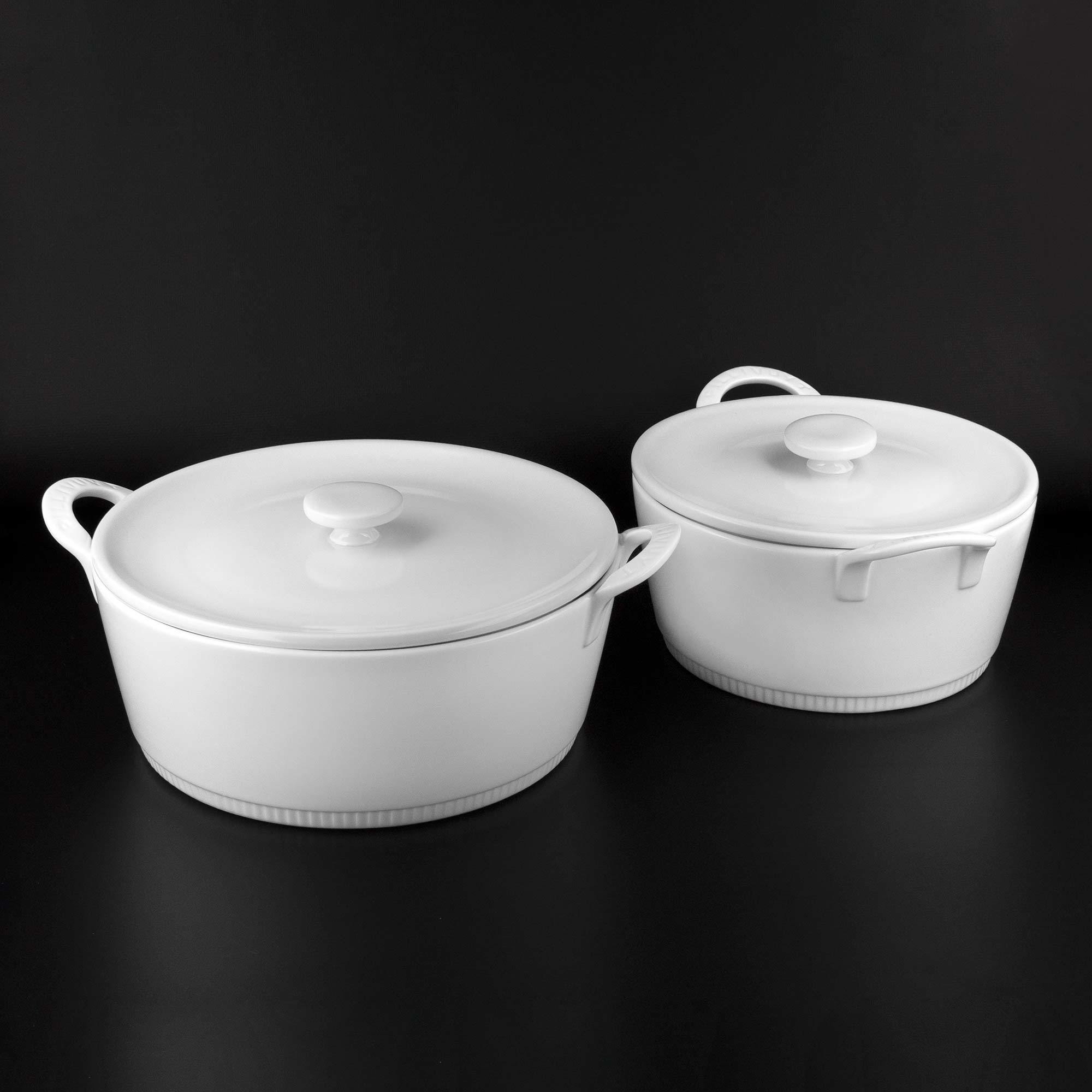 Фарфоровые кастрюли и кокоты удивительно многофункциональны. Особенно если они изготовлены талантливыми мастерами французского бренда Pillivuyt. В изделиях этого рода можно не только варить или тушить, но еще и запекать разнообразные продукты. Их керамическая основа обладает удивительным качеством равномерного распределения тепла от любого источника, а также сохранения его длительное время. Недаром наши прабабушки так ценили глиняные горшки — в них и супы, и вторые блюда получилась наваристее и вкуснее, нежели в металлических аналогах.