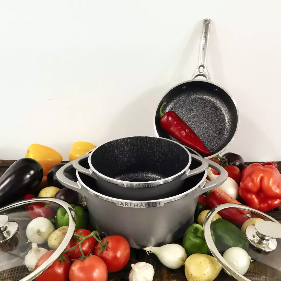 В основе большинства изделий лежит алюминий, чьи показатели теплопроводности обеспечивают создание внутри емкости идеальные условия для приготовления любых, даже самых деликатных блюд. Кроме того, большое значение в предпочтении подобной посуды играет ее универсальность. Эти кастрюли, сковороды и сотейники можно использовать на любой варочной поверхности, включая индукционную.