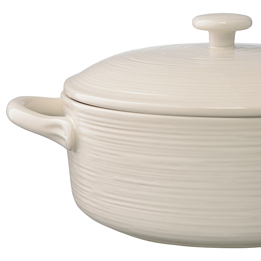 Жаропрочная кастрюля In The Village – прекрасный вариант для приготовления блюд в духовке и микроволновой печи. В ней можно тушить овощи, мясо, рыбу, делать соусы, а также печь пироги и пр. Емкость из экологичной керамики при нагревании не выделяет вредных соединений. В такой кастрюле готовая пища хранится намного дольше за счет химической инертности материала. Рельефный узор в ретро-стиле придает посуде благородный вид. Наличие ручек и крышки обеспечивает удобство использования. Глазурованное покрытие выполняет не только декоративную функцию, а также защищает поверхность изделия от неблагоприятных внешних воздействий.