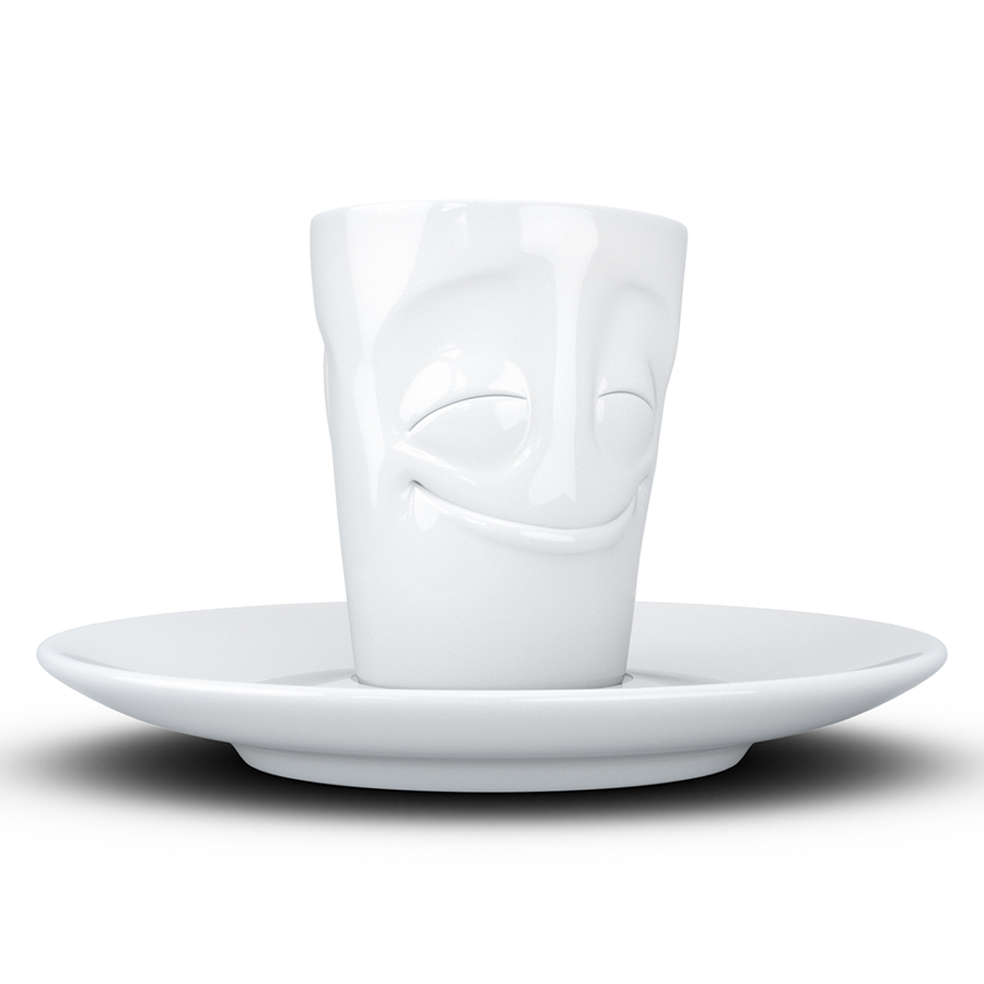 Кофейная пара из оригинальной чашки и блюдца отлично подойдет для подачи эспрессо.