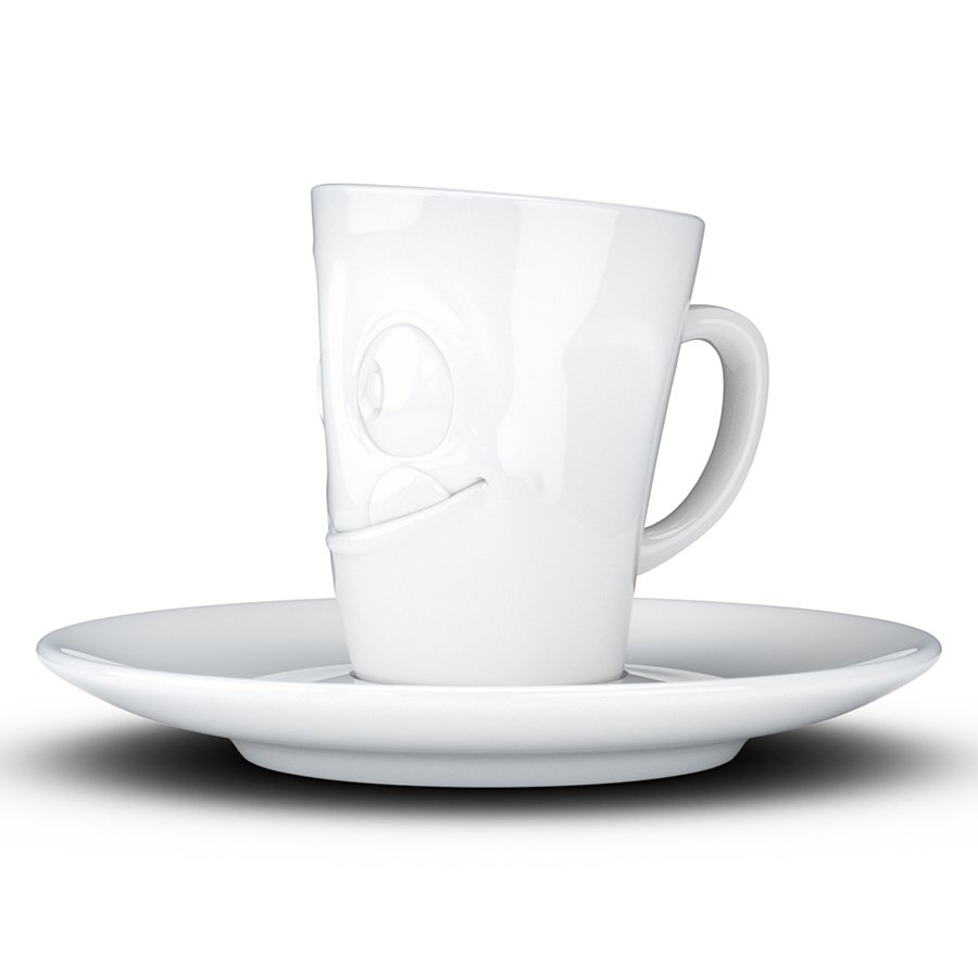 Кофейная пара из оригинальной чашки и блюдца отлично подойдет для подачи эспрессо.