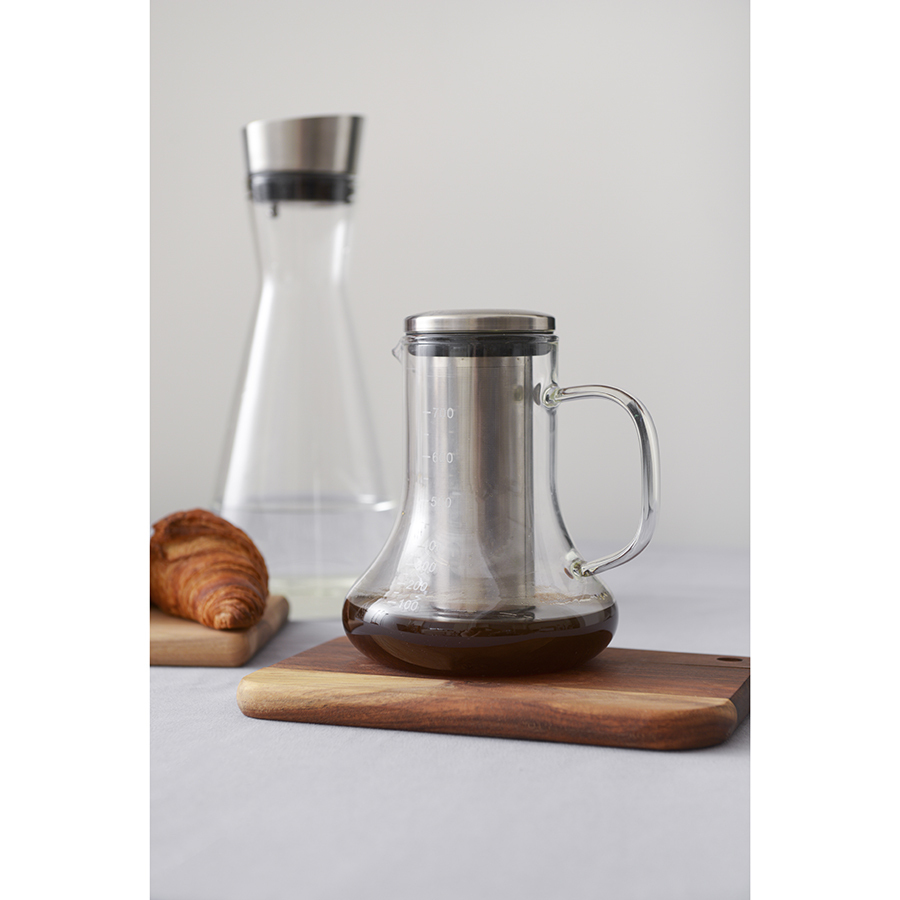 Кофейник представляет собой лаконичную емкость из стекла с расширенной нижней частью, эргономичной ручкой, крышкой и специальным "носиком" для аккуратного наливания напитка. Практичные материалы изготовления обеспечивают изделию простой уход, устойчивость к износу и долговечность. Благодаря минималистичному дизайну посуда отлично вписывается в интерьер любой современной кухни.