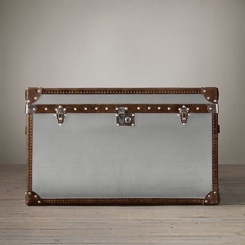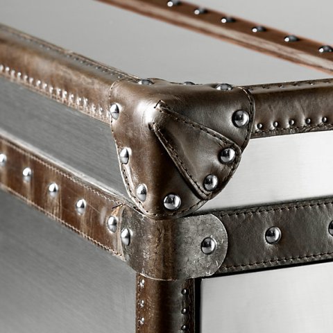 Комод с оригинальным дизайном в виде сундука, выполнен из массива дуба с оббивкой металлом. Декорирован деревом и натуральной кожей.