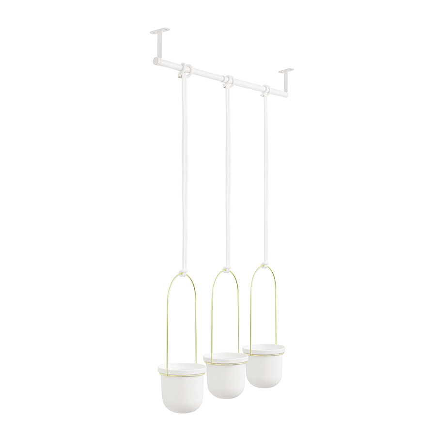 Комплект горшков для растений Umbra Triflora подвесной белый-латунь